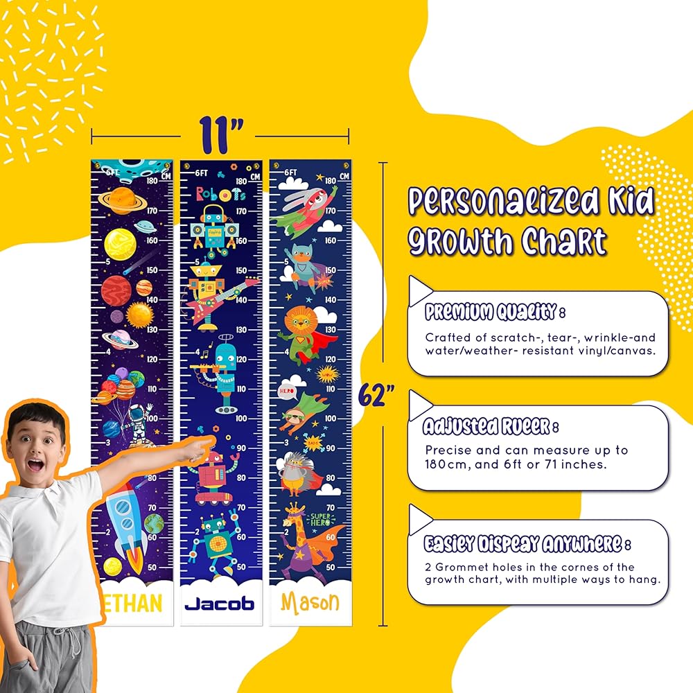 15 تصميمًا مخصصًا فريدًا: من وحيد القرن والصواريخ إلى حيوانات الغابة وحوريات البحر، تأتي مخططات نمو الأطفال لدينا في 15 نمطًا رائعًا. أضف اسم طفلك للحصول على ديكور حائط سحري ومخصص سيحبه!
