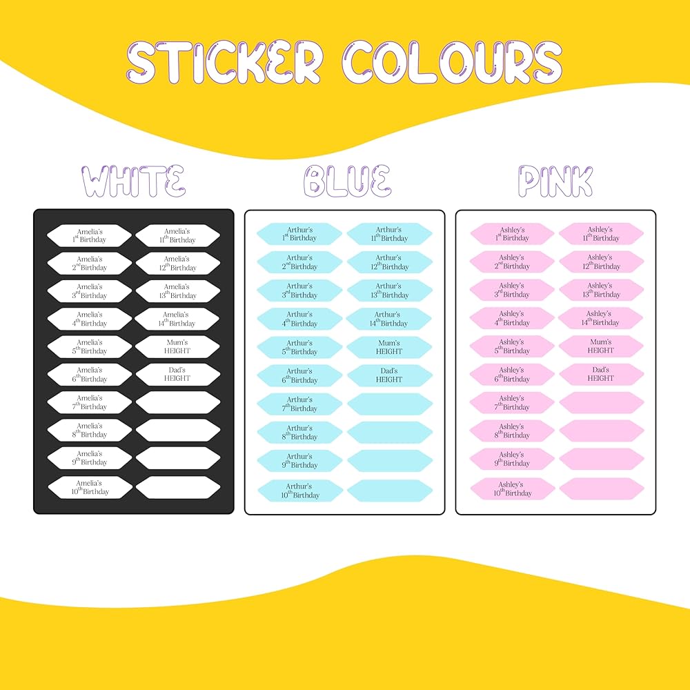 تتضمن ملصقات Milestone الإضافية: تأتي مع ملصقات مميزة متطابقة باللون الأبيض أو الوردي أو الأزرق! قم بتمييز أعياد الميلاد ومعالم الطول حتى عمر 14 عامًا، مما يجعل تتبع النمو أكثر إثارة ولا يُنسى.