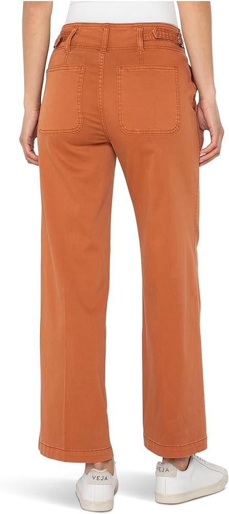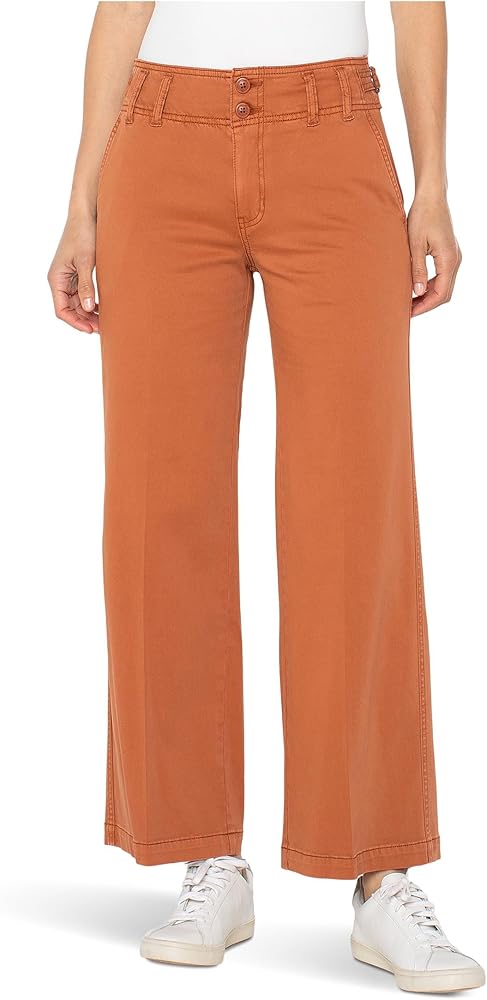 Step into effortless elegance with the Liverpool Los Angeles High-Rise Cinch Waist Wide Leg Pants. The flattering high waist and flowy silhouette create a chic look, while the side tabs cinches in at the waist for a tailored finish. The medium wash pants feature a double button & zip-fly closure, two slash pockets on the front, two patch pockets on the back, and a wide-leg silhouette. Whether you're dressing up for a night out or styling it casually, these versatile pants are sure to turn heads. Regular fit. 55% cotton, 42% rayon, 3% spandex. Machine washable.
