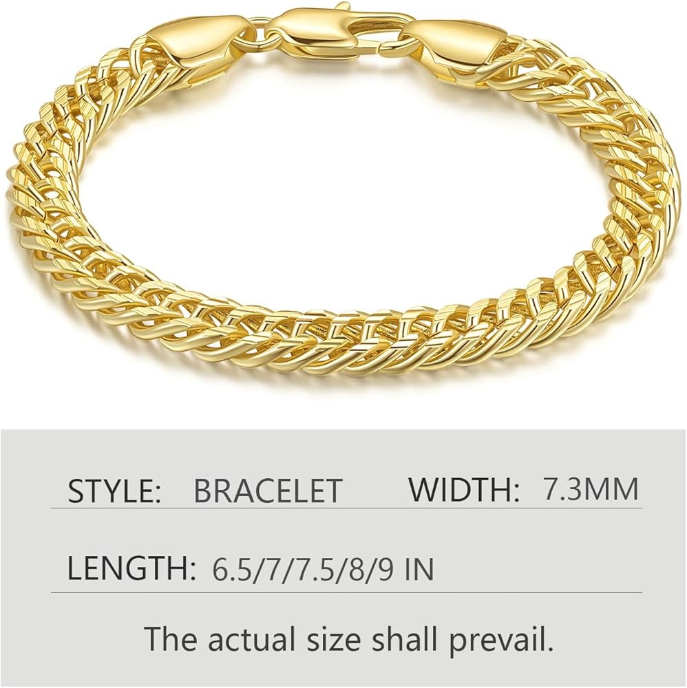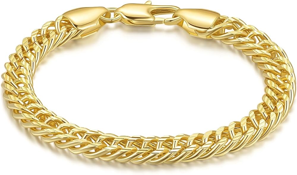 Crafted with a sleek Cuban chain design, the 14k gold plated bracelets for women are adorned with a reliable lobster clasp, marrying style with practicality. The robust link structure guarantees longevity, promising that these 14k gold chain bracelets for women will withstand the test of time, becoming enduring symbols of grace and refinement. Whether you're shopping for yourself or searching for the perfect gitfs for women men, these bracelets for women trendy love bracelet embody a universal appreciation for understated luxury. Embrace the lightweight comfort of these gold bracelets for women non tarnish, designed to be worn effortlessly from morning till night, complementing any ensemble with their subtle charm. Available in a range of sizes from 6.5 to 9 inches, each dainty gold bracelet stack is meticulously crafted to ensure an exquisite fit, catering to diverse wrist sizes and preferences. This attention to detail of charm bracelets for women speaks to our commitment to providing personalized luxury to every wearer. Packaged with box, these gold рlаtеd bracelets for mens bracelet make a statement as gitfs for birthdays, anniversaries, or any special occasion. We stand behind the craft of our stackable bracelets for women, ensuring your complete satisfaction with every gold jewelry.