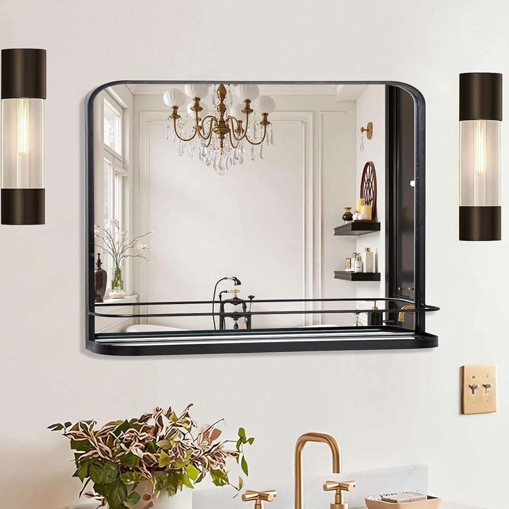 تصميم عصري وأنيق - إطار معدني أسود أنيق بزوايا دائرية ورف مطابق يخلق مظهرًا عصريًا. يوفر الزجاج الشفاف انعكاسًا ساطعًا وخاليًا من التشويش، مما يضيف لمسة أنيقة إلى أي غرفة.