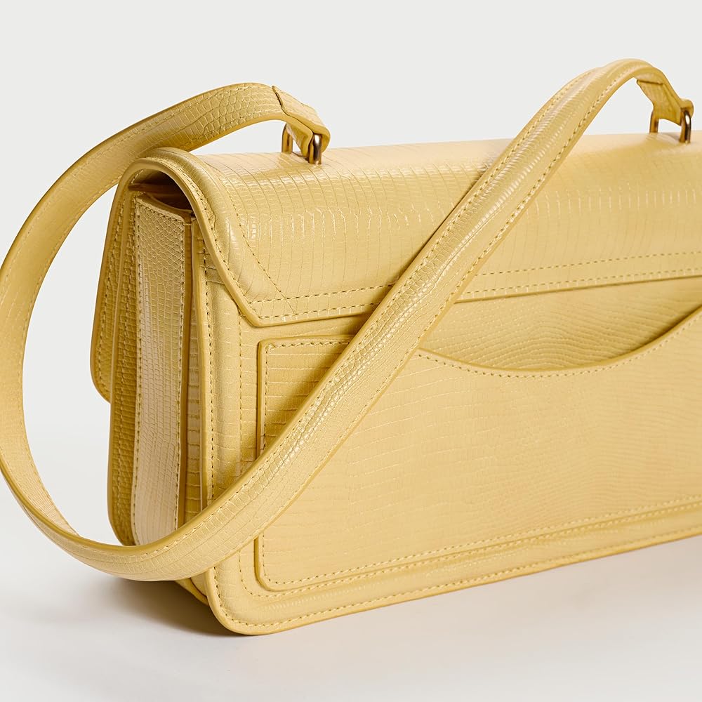 - إغلاق بقلاب أملس: يجمع بين الأناقة وسهولة الاستخدام، مما يحافظ على مقتنياتك آمنة مع تعزيز التصميم المتطور للحقيبة.