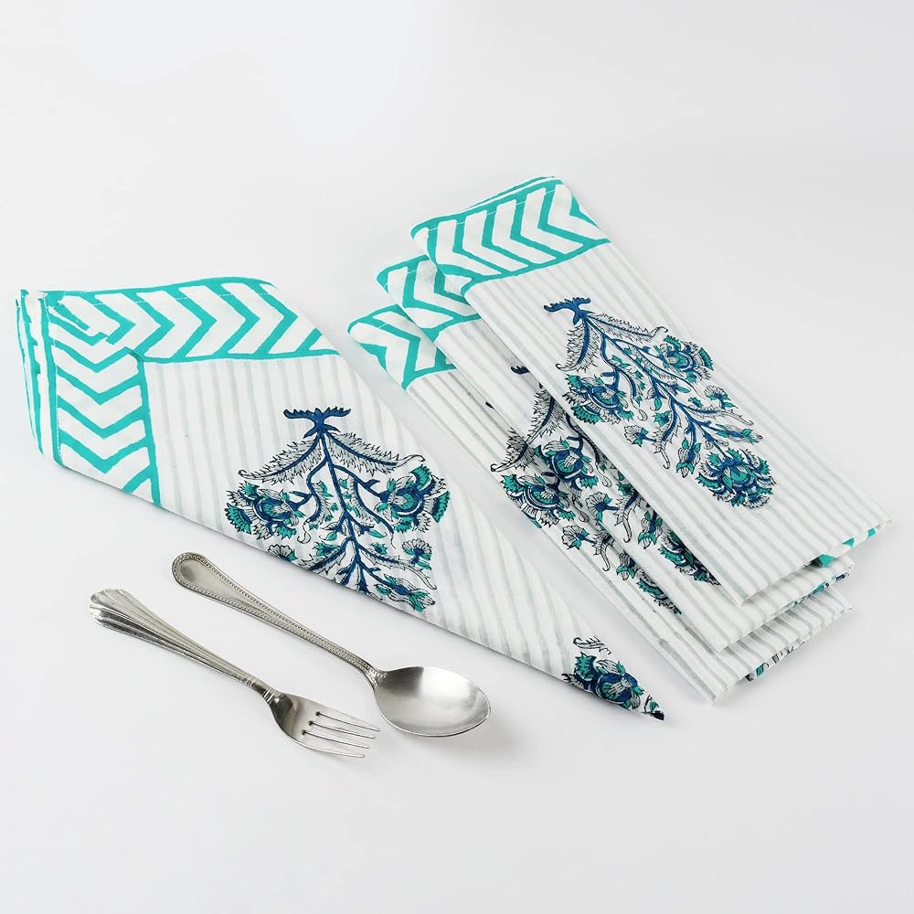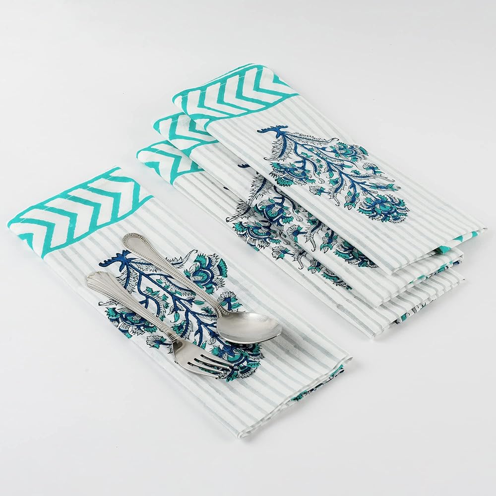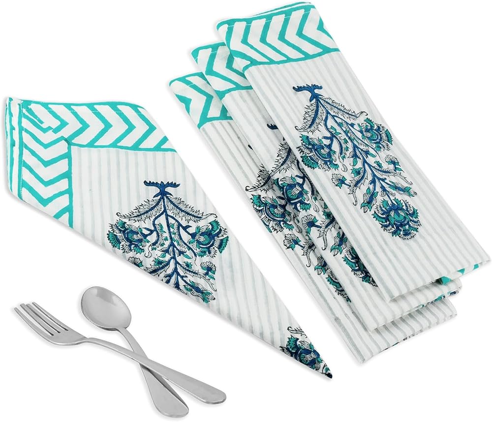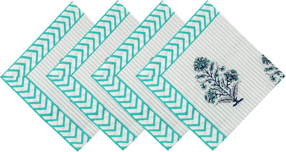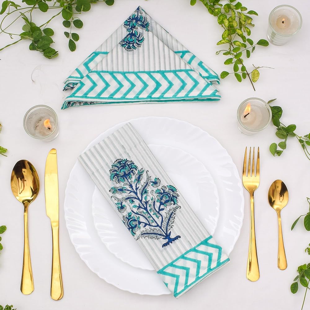 صناعة يدوية - تم ختم مناديل الطاولة الجميلة هذه يدويًا من قبل صانعين محليين في الهند باستخدام تقنيات تقليدية، حافة محشوة بدقة توفر لمسة من الأناقة.