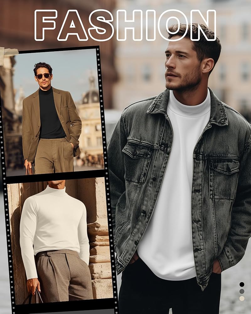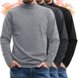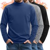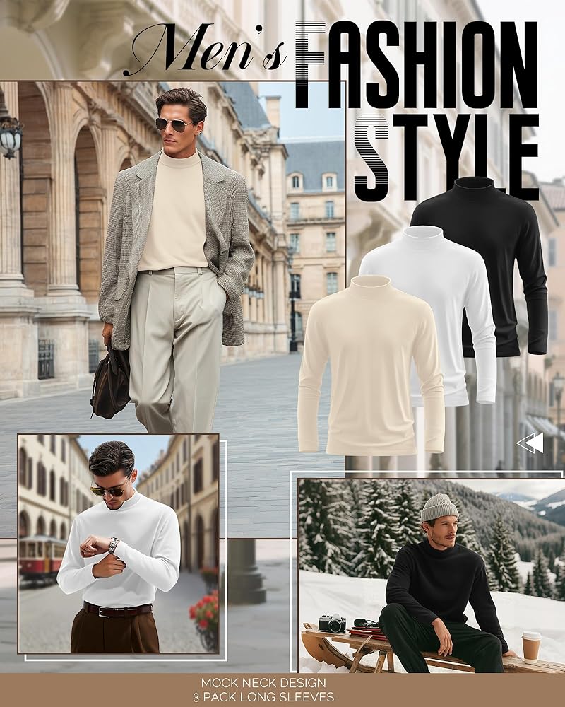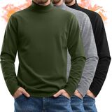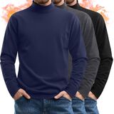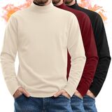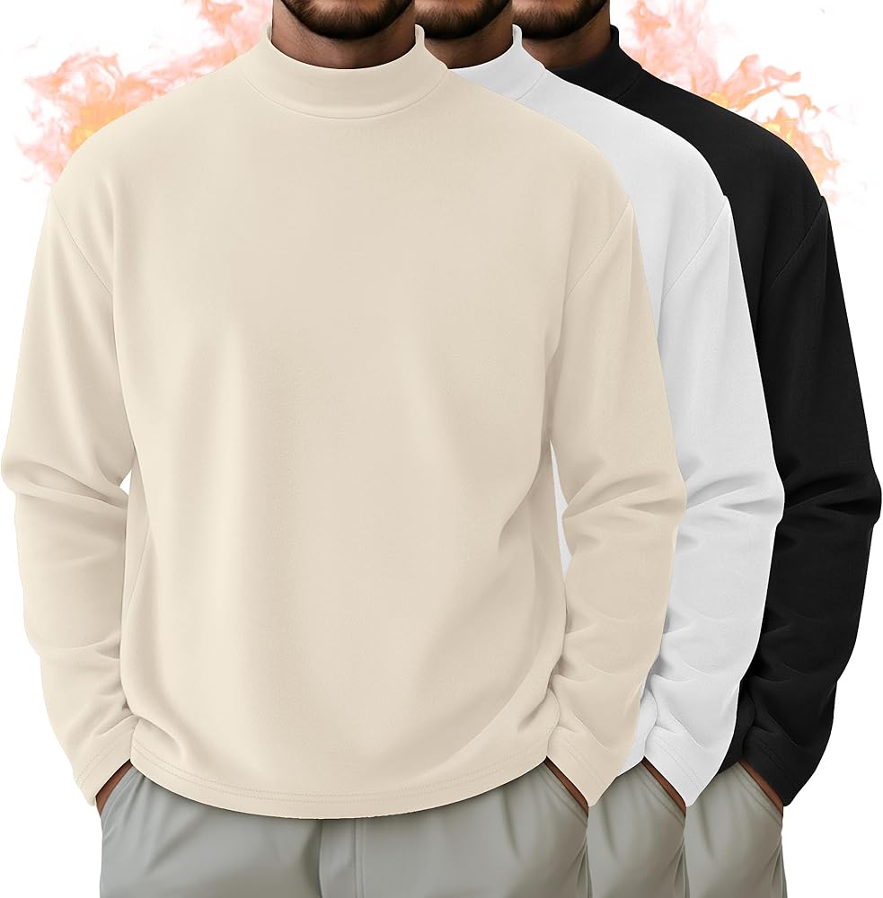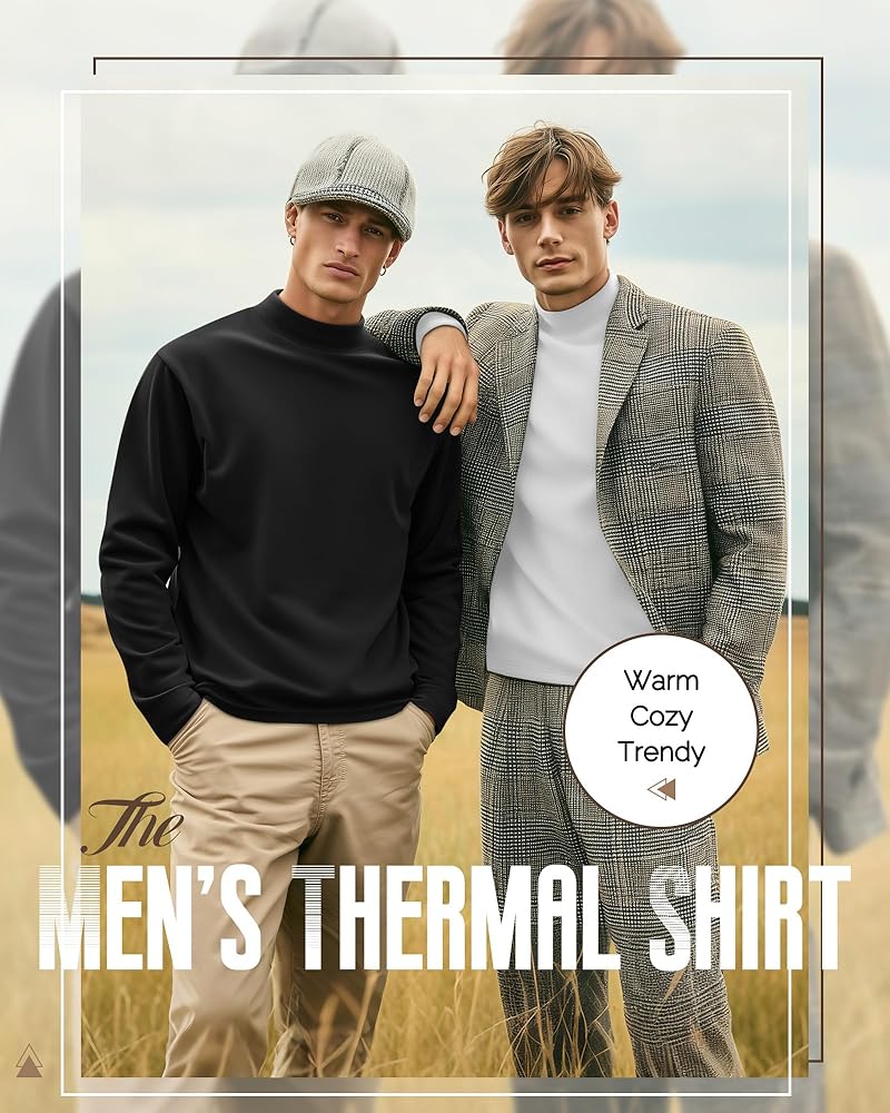 تصميم تفصيلي: تتميز القمصان الحرارية للرجال بتصميم ياقة مدورة وهمي. يمكنك طيها لأسفل أو تركها تغطي رقبتك بالكامل عندما يكون الجو باردًا جدًا ولا تريد رفع منظم الحرارة. يجب أن تكون في خزانة ملابسك للأيام الباردة