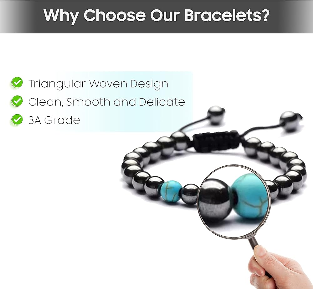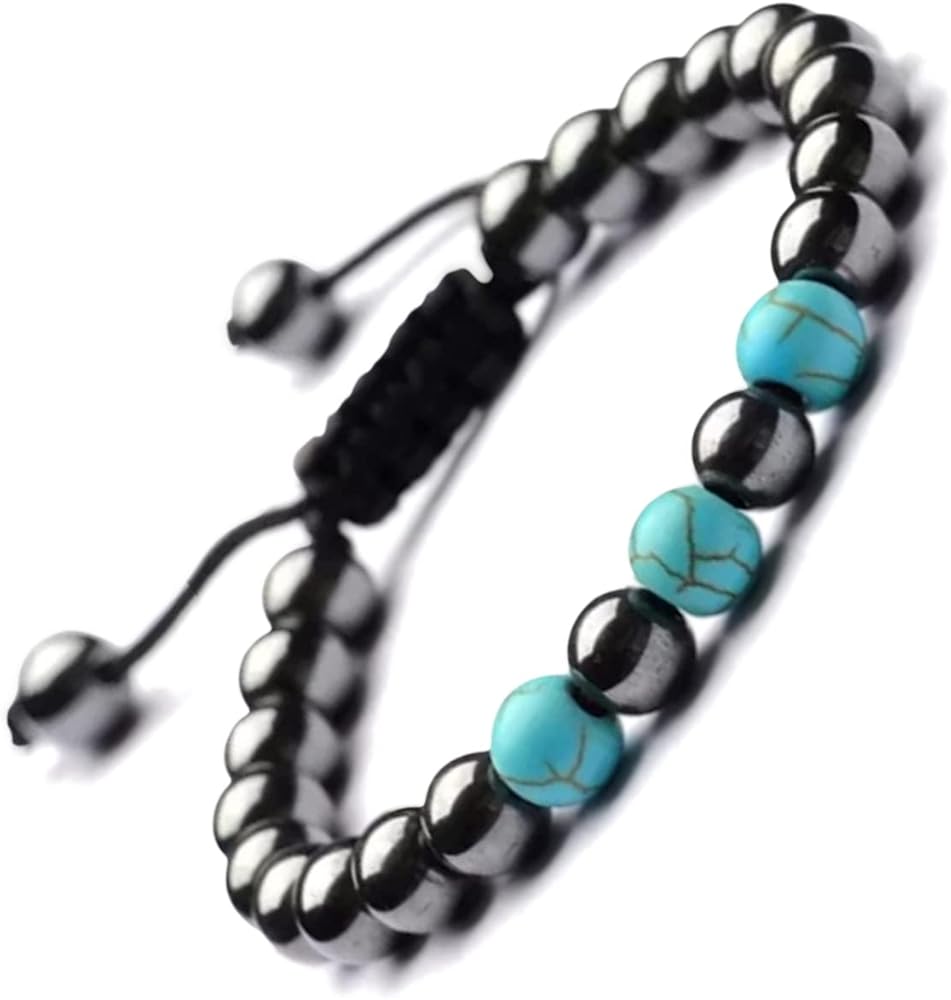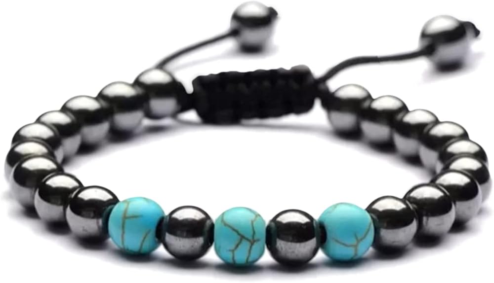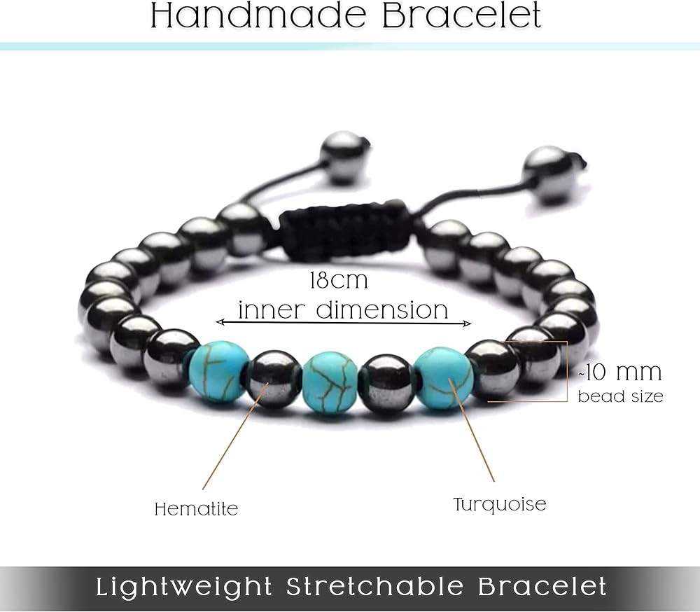 جودة ممتازة ومواد فريدة من نوعها - سوار كريستال من أحجار الهيماتيت الفيروزية عالي الجودة ليتحمل أي استخدام طويل الأمد، مناسب لكل من الرجال والنساء، خفيف الوزن وسهل الارتداء.