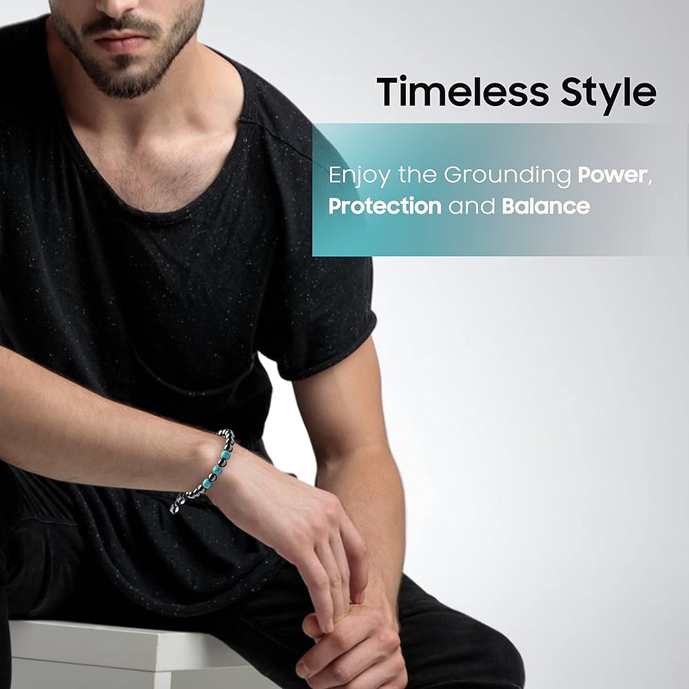 الأحجار الطبيعية - يعتبر الناس حجر الفيروز كجسم مقدس لقمع الأرواح الشريرة، ورمزًا للميمونة والسعادة. يمثل النصر والنجاح، ويحظى بسمعة "حجر النجاح". الهيماتيت معروف جيدًا بخصائصه التأريضية والحماية. سوف يحافظ على سلامتك العاطفية والروحية. الهيماتيت يزيل السلبية و"ينقي" التوتر العاطفي في الجسم.