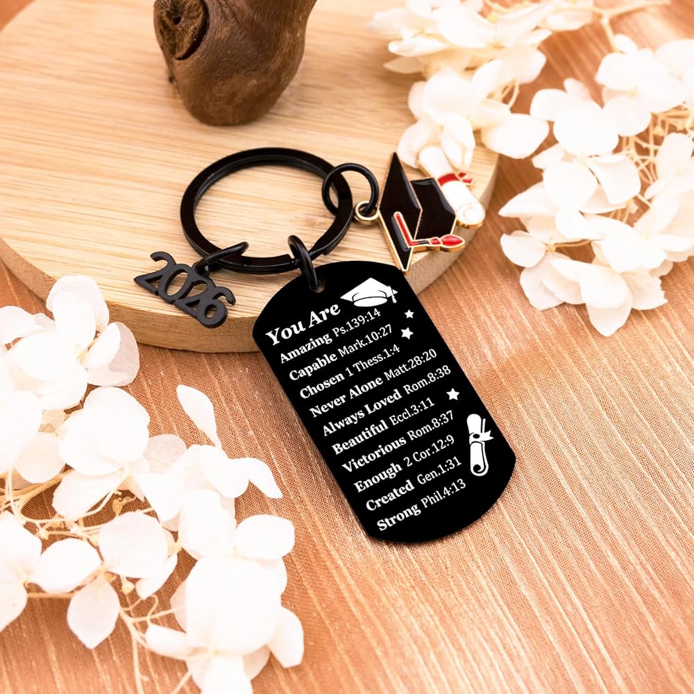 هدايا التخرج من الدرجة الخامسة: سلسلة مفاتيح الكتاب المقدس، يمكنك إعطاؤها لها/لها لمن يتخرج، أو إكسسوارات الكتاب المقدس للنساء أو لصديق يتخرج. بالنسبة للمدرسة لأول مرة، أو الخروج من الحرم الجامعي، أو رياض الأطفال أو المدرسة الثانوية أو طلاب الجامعات، هذا منتج رائع يمكن تقديمه كهدية عندما يخرج هذا الشخص من الحرم الجامعي.