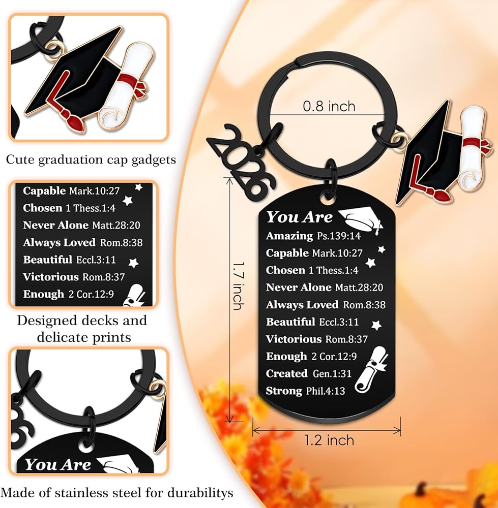 علامات الكتاب المقدس: الجسم الرئيسي لهدايا التخرج 2026 عبارة عن لوحة مستطيلة ذات حروف مع أرقام 2026 للتخرج وحلية قبعة التخرج. يستخدم النص أعلاه فصول الكتاب المقدس غير المستخدمة لتشجيع هؤلاء الخريجين على الإيمان بأنفسهم. إنه أيضًا نوع من هدايا التخرج، هدايا التخرج من الصف الخامس لتتمكن من تذكر الشباب الرائع. وهو أقرب إلى نوع من الإيمان.