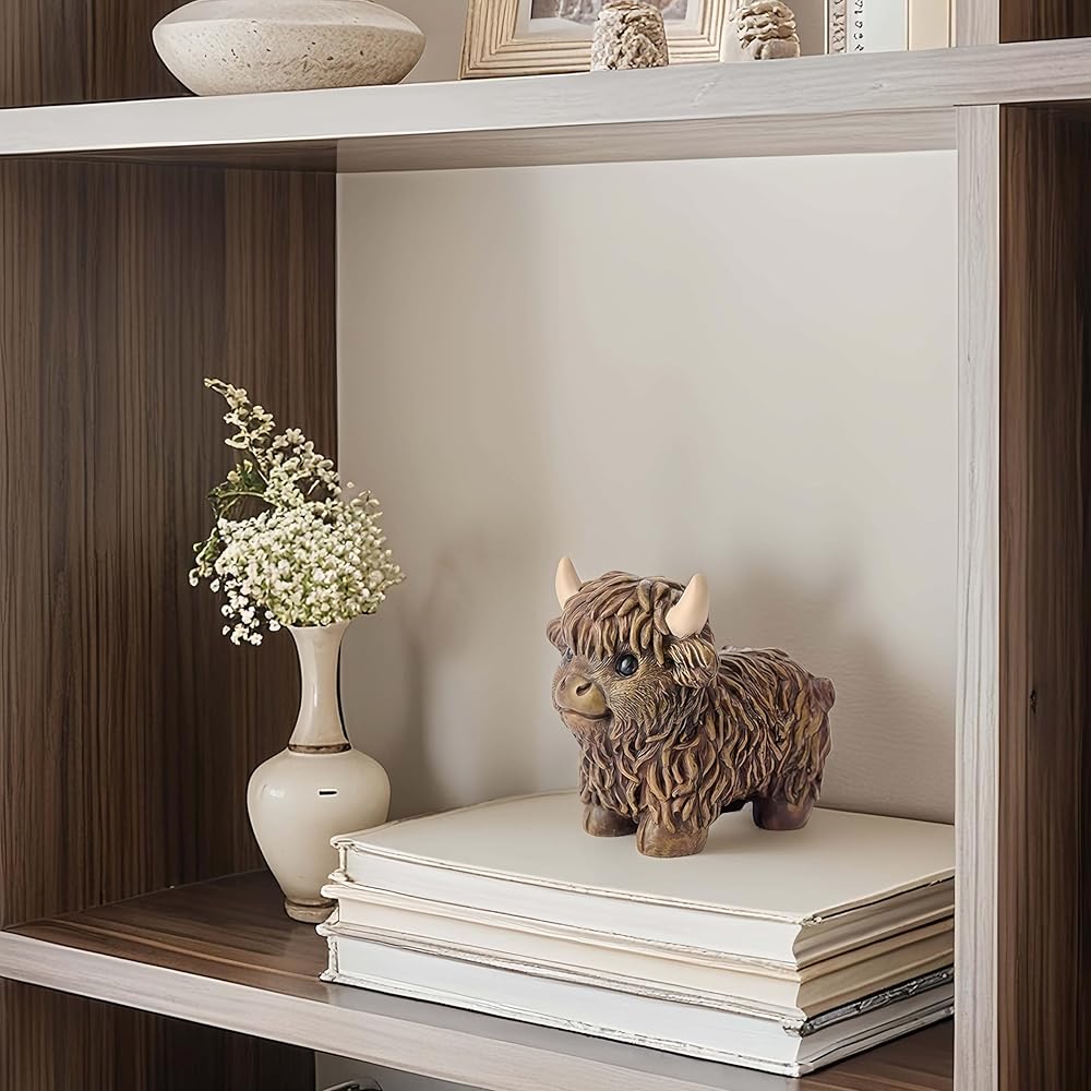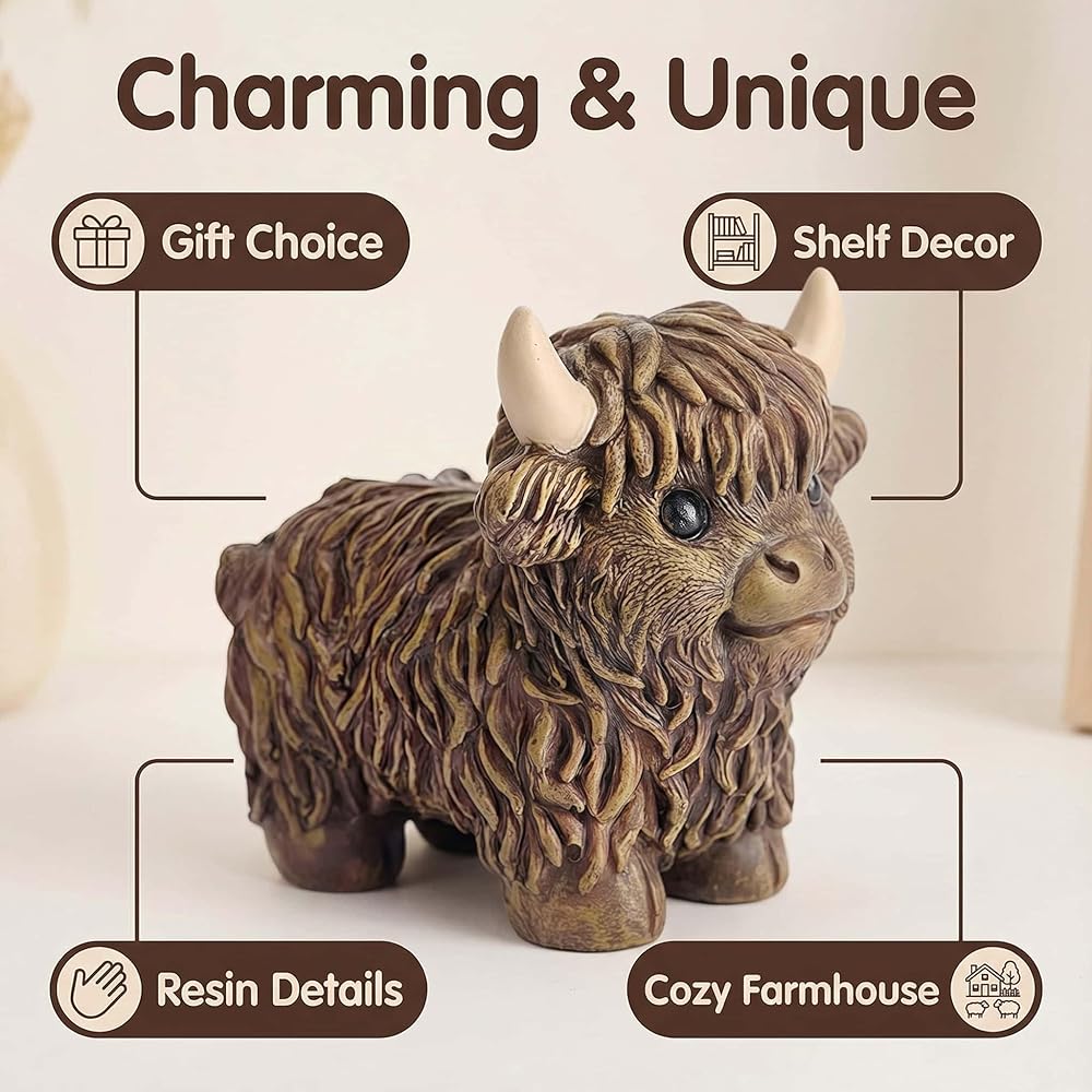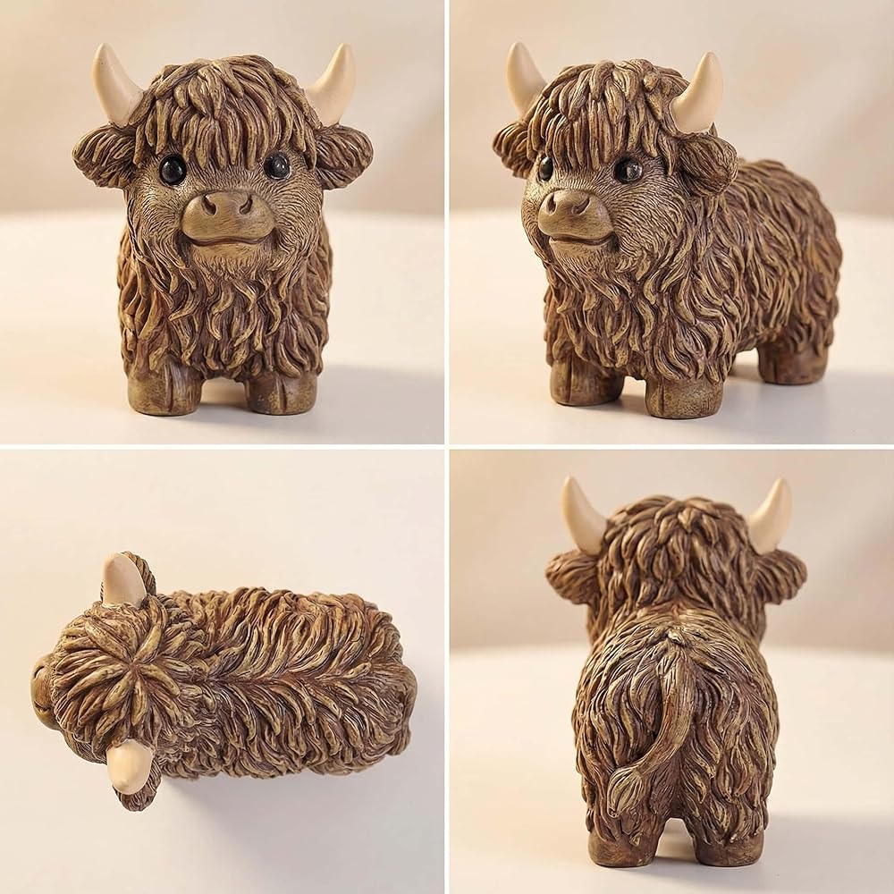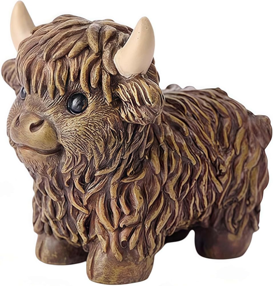 الراتنج البني المرتفعات بقرة جنوم تمثال ديكور العجل التماثيل لصواني المزرعة المتدرجة، والحدائق، ومهرجان المنزل الشمالي في الهواء الطلق مكتب داخلي رف الكتب غرفة المعيشة زخرفة 4.3 بوصة