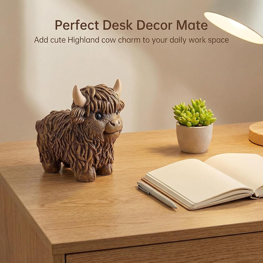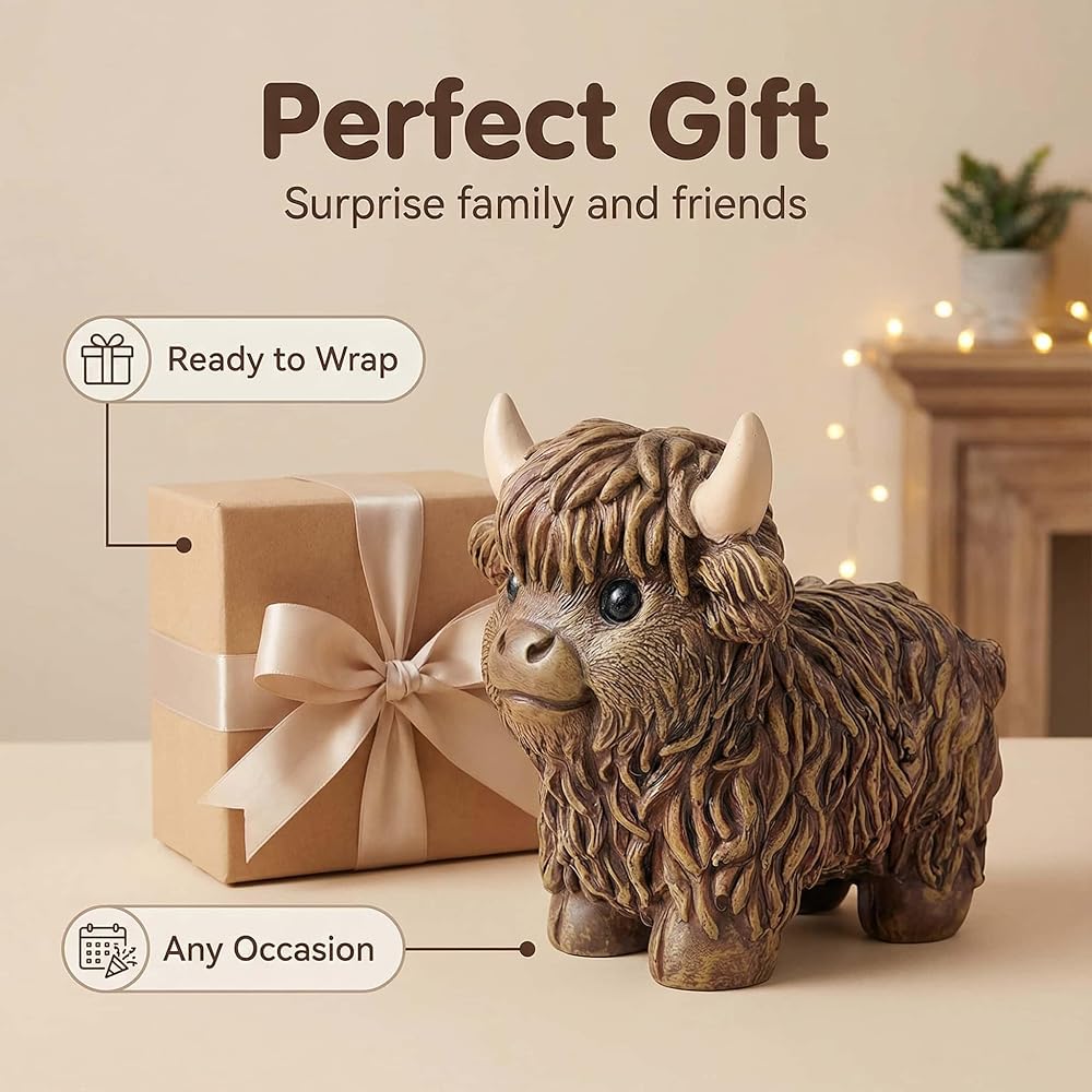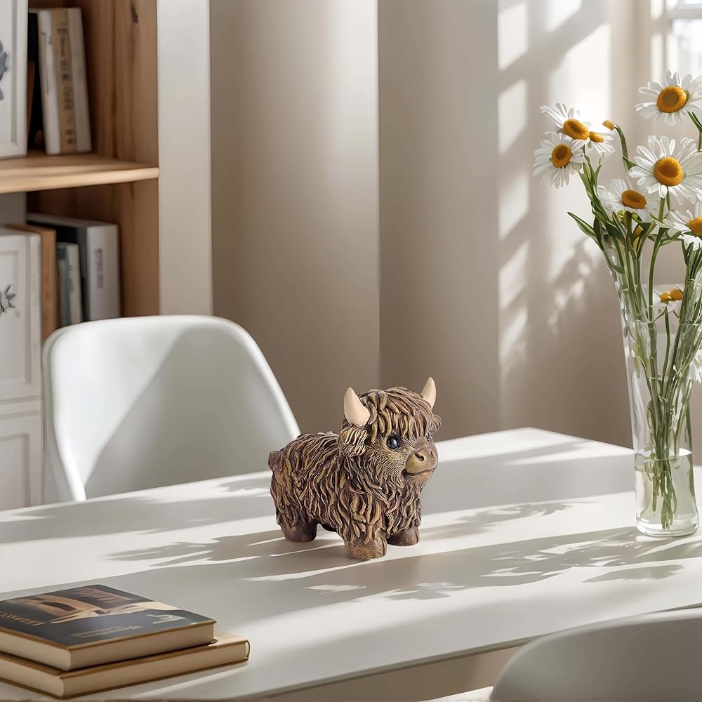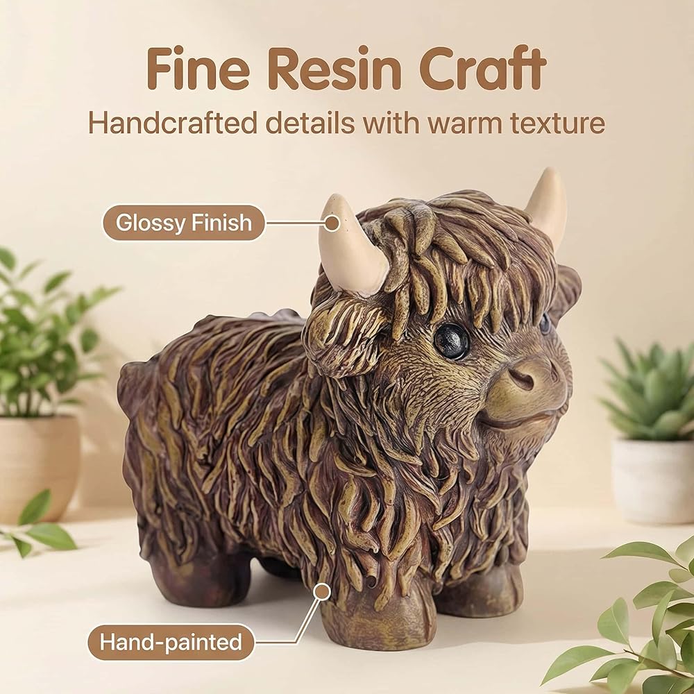 الراتنج البني المرتفعات بقرة جنوم تمثال ديكور العجل التماثيل لصواني المزرعة المتدرجة، والحدائق، ومهرجان المنزل الشمالي في الهواء الطلق مكتب داخلي رف الكتب غرفة المعيشة زخرفة 4.3 بوصة