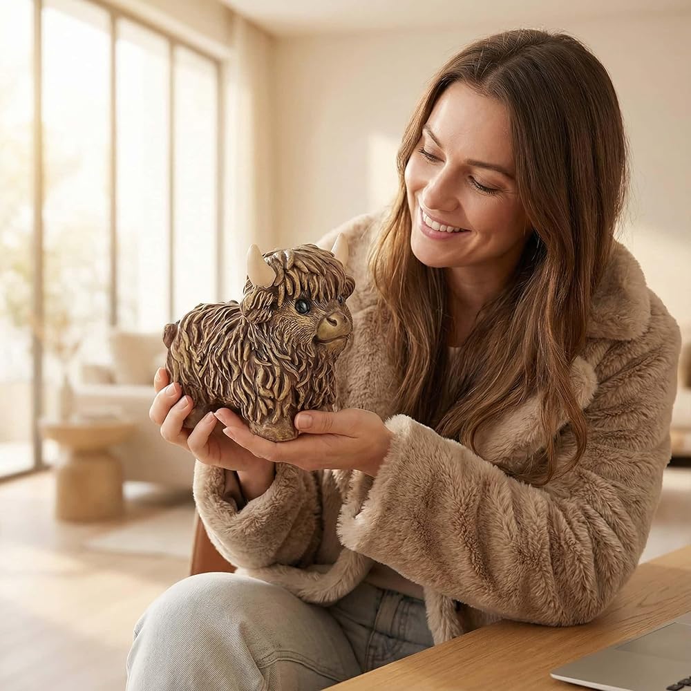 صناعة يدوية ناضجة: زخارف بقرة المرتفعات الصغيرة الرائعة على الطراز الاسكتلندي الحديث مصنوعة من الراتنج الطبيعي المتين ومطلية بلونين جذابين البني والبرتقالي، وشكلت زوجًا من هدايا الساق اللافتة للنظر للنساء والفتيات والأم والأب، إلخ.