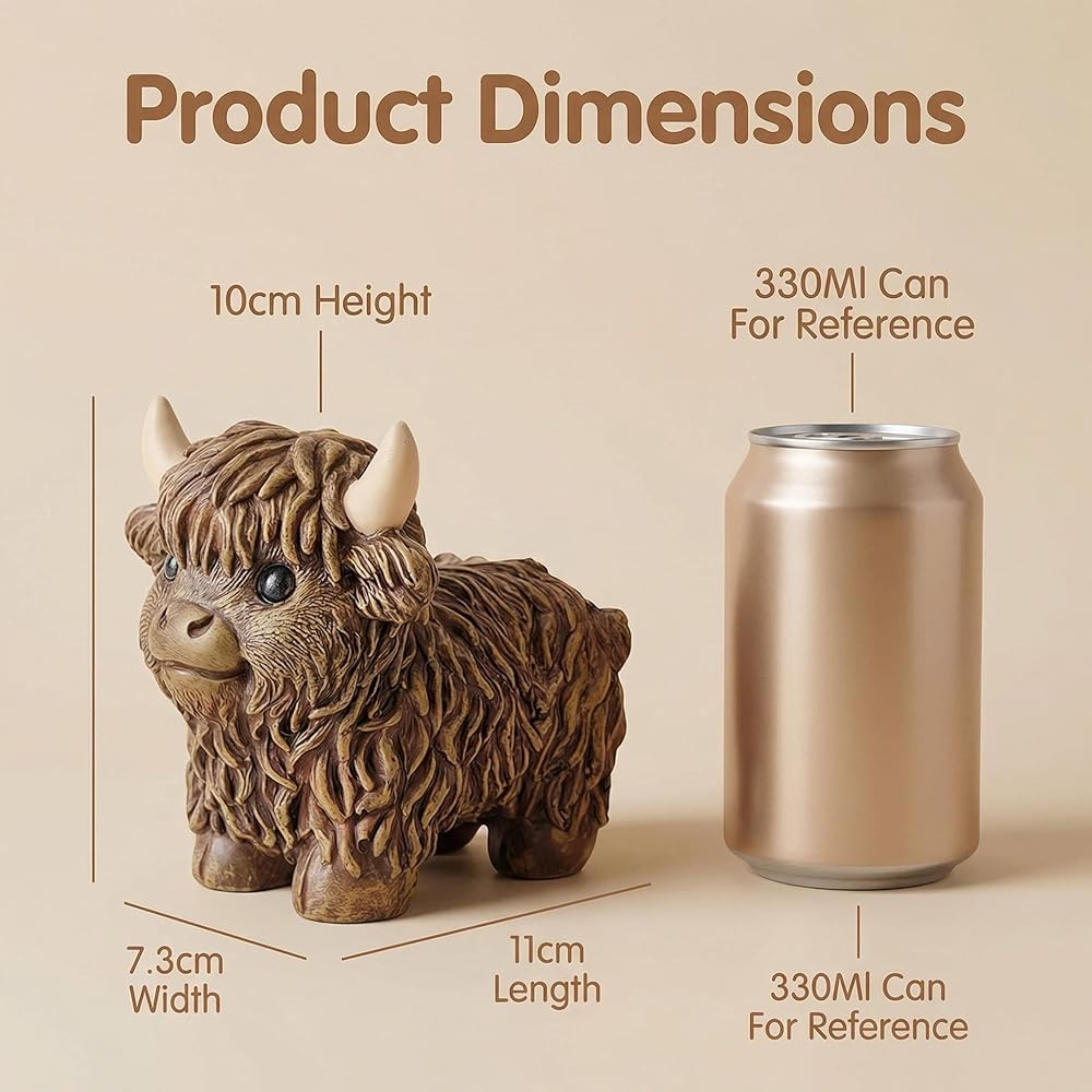 اختيار هدايا جميلة: ديكور أبقار المرتفعات الآمن والمعبأ هو اختيار هدية مبهج لأصدقائك أو عشاقك أو عائلتك مثل هدايا العطلات العائلية للبالغين والأطفال، وهدايا الحفلات للأصدقاء، إلخ. حجم الأبقار: بني/برتقالي: 4.3 بوصة طول × 2.9 بوصة عرض × 3.5 بوصة ارتفاع.