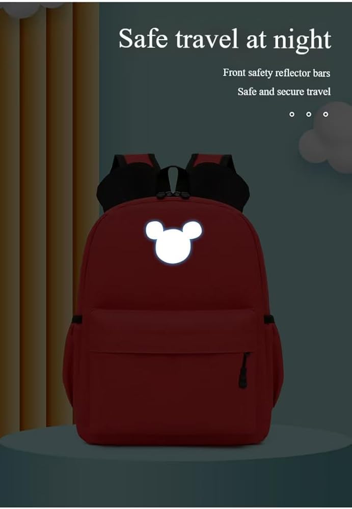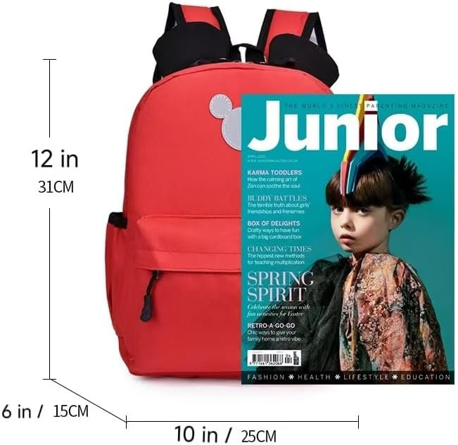 Design: Front safety reflective strip ensures safe and reliable travel. The cute mouse-shaped backpack is perfect for you, with cute ear details that bring the character to life.size : 12 * 10 * 6 inches
