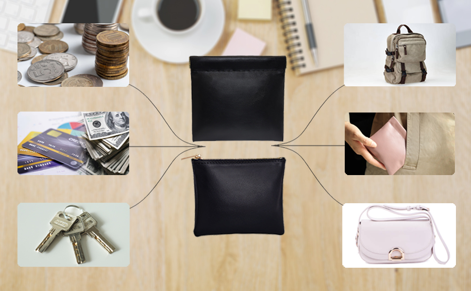 توافق واسع: لا تُستخدم محفظة العملات المعدنية في حقيبتك فحسب، بل تُستخدم أيضًا في سيارتك أو غرفة الغسيل أو في أي مكان تحتاج فيه إلى عملات معدنية.