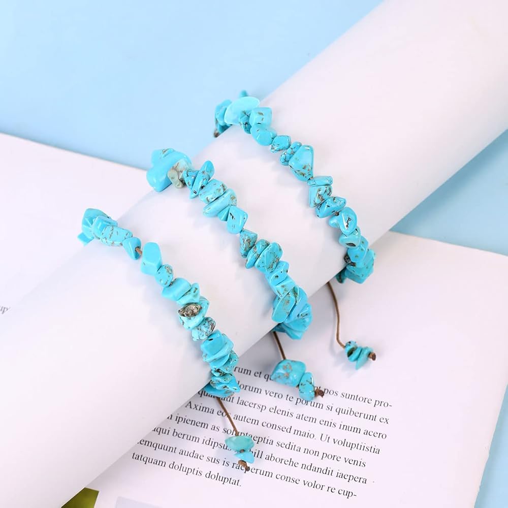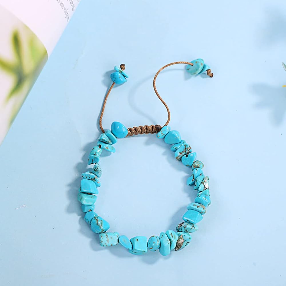 تم نسج هذا السوار القابل للتعديل المصنوع من رقائق الأحجار الكريمة الفيروزية يدويًا على حبلنا المتين والمقاوم للماء مع قفل منزلق قابل للتعديل. طراز بوهيمي نقي ومثالي للتكديس!