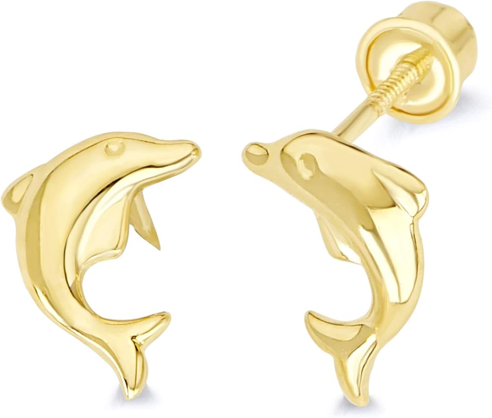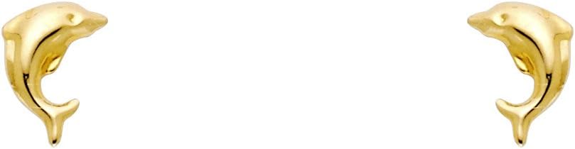 Wellingsale 14K الذهب الأصفر المصقول دولفين أقراط مع المسمار الخلفي