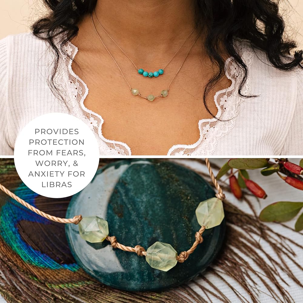 قلادة ملهمة. الميزان: ثلاثة أحجار كريمة من البريهنيت مقطوعة بشكل بسيط مقاس 8 مم توفر الحماية من المخاوف والقلق والقلق لمواليد برج الميزان. تقدم مجموعة الأبراج الخاصة بنا الدعم لجميع الأبراج النجمية من خلال الجمع بين الأحجار الكريمة العلاجية لتحقيق التوازن في سمات الشخصية.