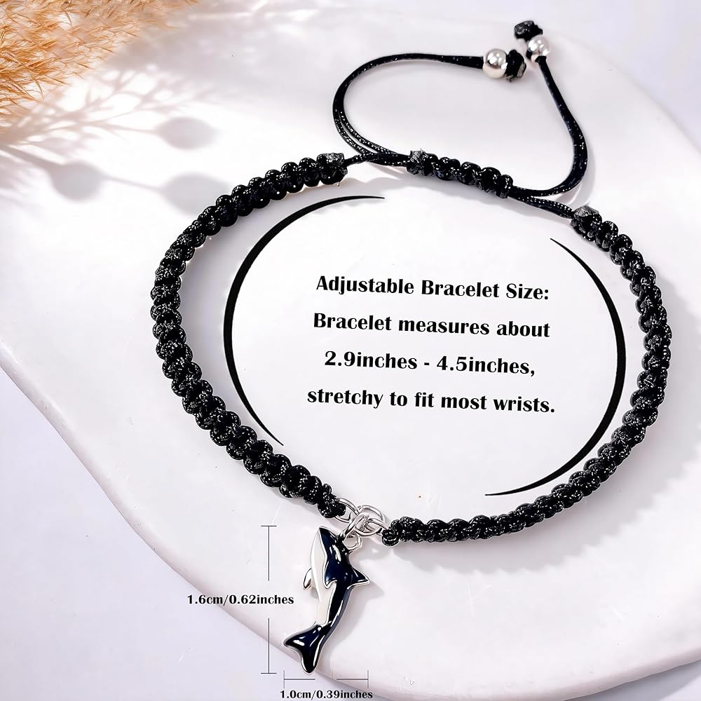 ✔خامة عالية الجودة: هذا السوار المضفر مصنوع من حبل قوي. قوي ومريح في الارتداء. دع سوار حوت أوركا هذا يجلب التشجيع للمتلقي والحظ السعيد.