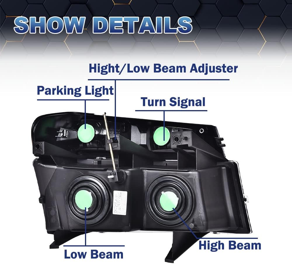الاستبدال المباشر - يوصى بشدة بالتركيب الاحترافي. لا توجد فجوات إضافية بعد التثبيت السهل. تأتي مع مجموعة كاملة من المصابيح الأمامية، بما في ذلك جوانب السائق (يسار) والراكب (يمين). لا يتم تضمين المصابيح.