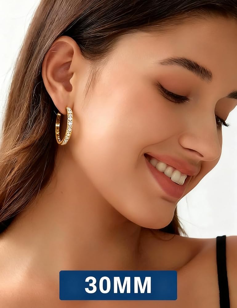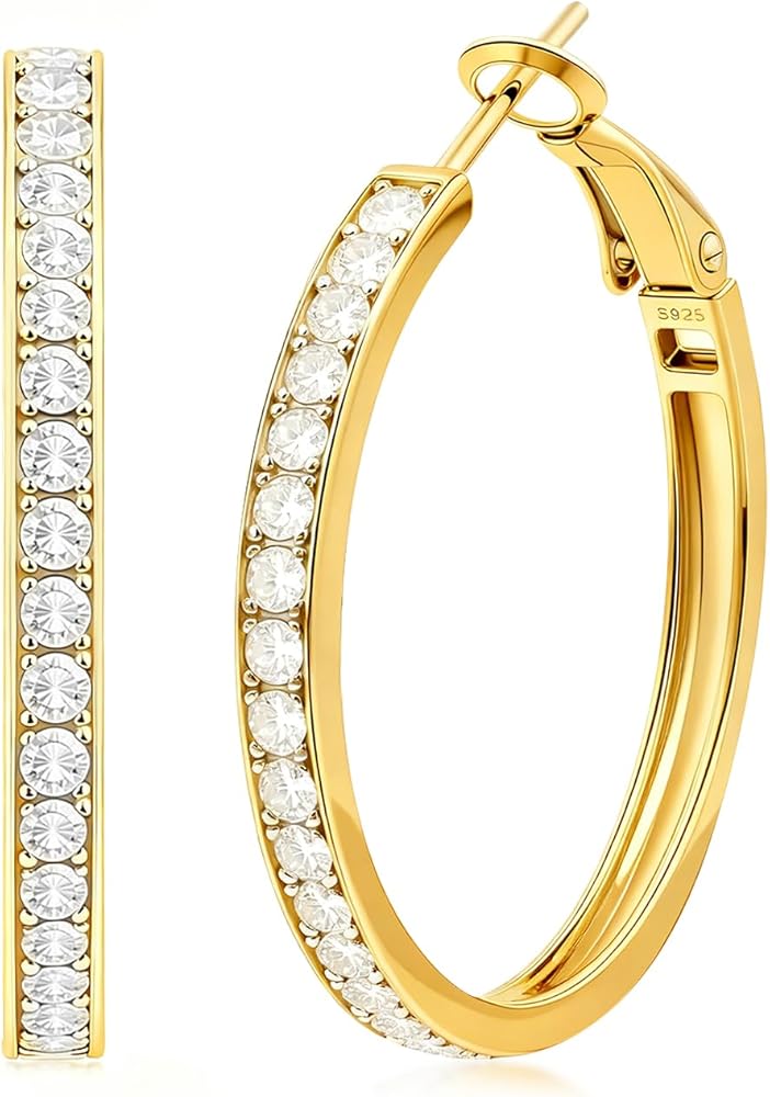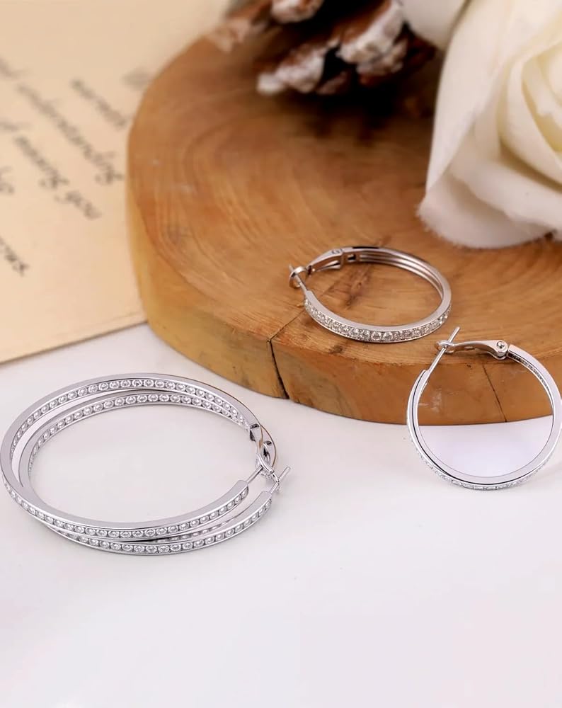 مصنوعة من مواد لا تسبب الحساسية - الأقراط الكبيرة المصنوعة من الألماس مصنوعة من الذهب الأبيض عيار 18 قيراط والفضة الإسترلينية عيار 925. جميع المعادن التي نستخدمها خالية من الرصاص والنيكل ولا تسبب الحساسية، وهي آمنة وصديقة لجميع أنواع البشرة الحساسة تقريبًا. هذه الأطواق الفضية لن تحول بشرتك إلى اللون الأخضر أو الأحمر أو الحكة.
