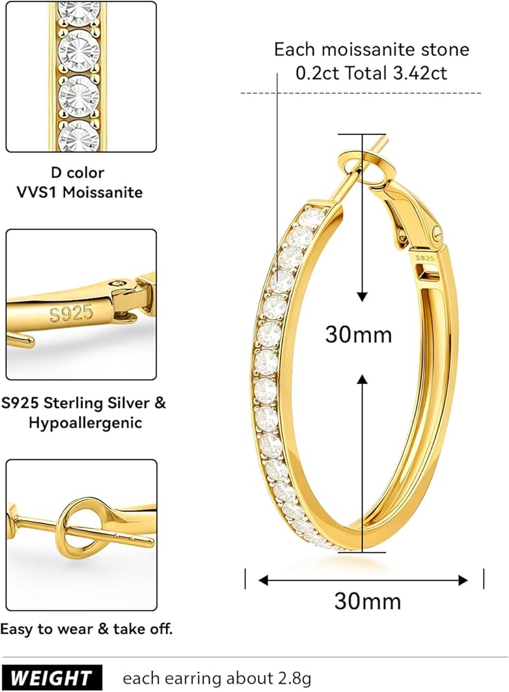 مصنوعة من أجل القيمة - أقراط مويسانيتي دائرية مصنوعة من 2 مم/0.03 قيراط 116 قطعة مويسانيتي إجمالي 3.86 قيراط، مجموعة من الداخل للخارج الماس المحاكى تجعل الأقراط الطوقية أكثر تألقًا. ابتكرت جميع المختبرات لون D/وضوح VVS1/مويزانايت مستدير ممتاز بنفس الخصائص البصرية والفيزيائية مثل الماس الحقيقي الذي لن يفقد تألقه أو ناره أبدًا. معتمدة وصادرة من هيئة GRA، والتي يمكنها اجتياز اختبار الماس بنسبة 100%