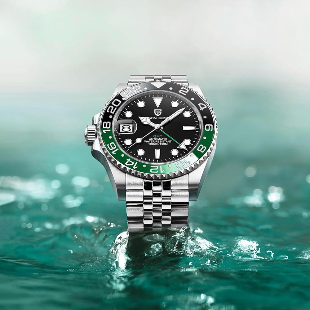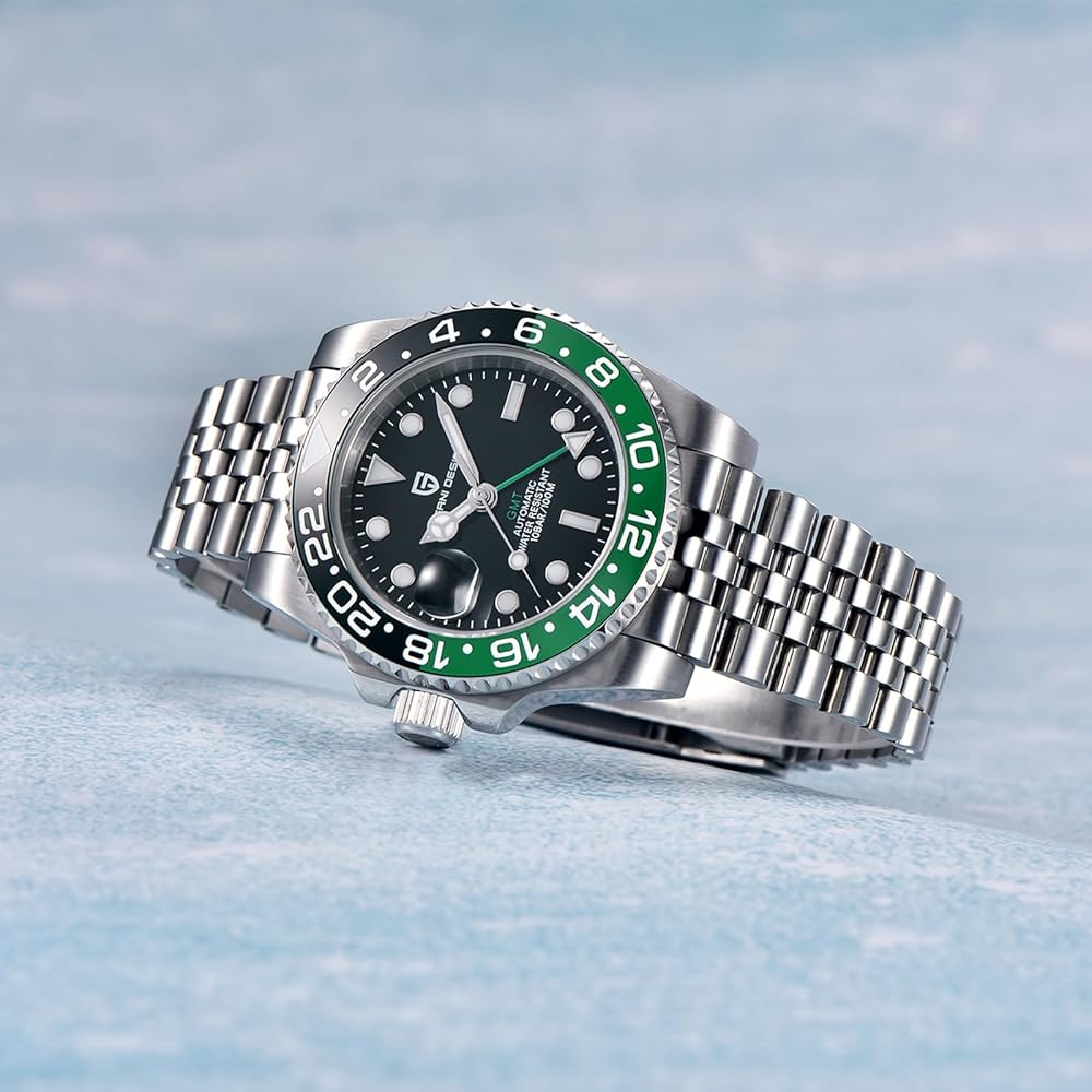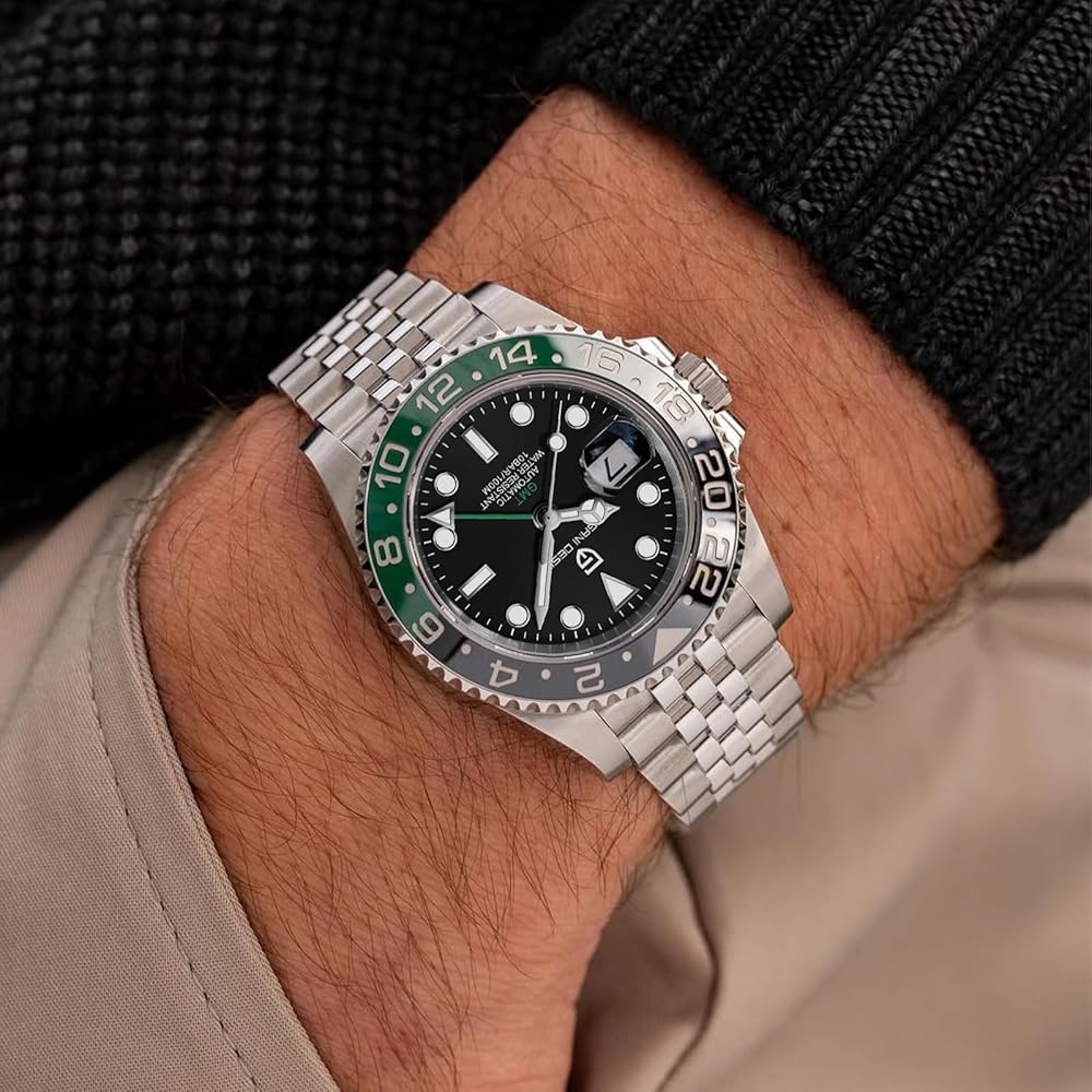 الساعة الأوتوماتيكية: ساعة gmt هذه مجهزة بحركة NH34 المستوردة من اليابان، والتي تتمتع بموثوقية عالية ودقة زمنية عالية، ويمكن أن تعمل بشكل طبيعي في مختلف البيئات القاسية. لا تتطلب الحركة بطارية ويمكن لفها تلقائيًا بعد ارتدائها لمدة 8 ساعات. كما أن لديها إمكانية توقيت جرينتش للتعامل مع فروق التوقيت بسهولة. عند استخدام الساعة لأول مرة، يرجى حوالي 20 لفة.