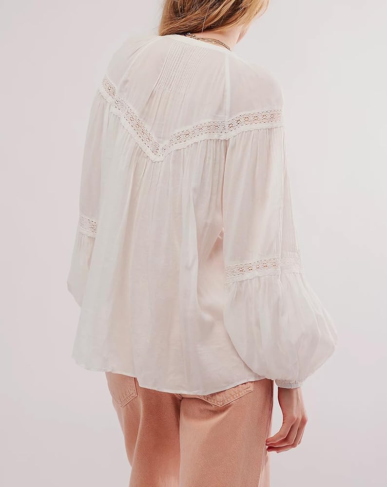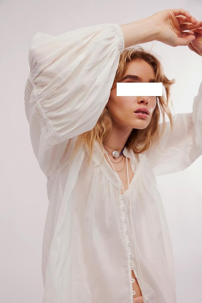• الميزات: مصمم بتفاصيل عصرية على شكل ربطة أمامية، وحواف مزخرفة بكشكشة، ولمسات من الأزرار، ويمزج هذا القميص بين سحر النير مع صورة ظلية بيبلوم انسيابية. الأكمام الطويلة وتفاصيل الدانتيل تخلق أجواء رومانسية عتيقة.