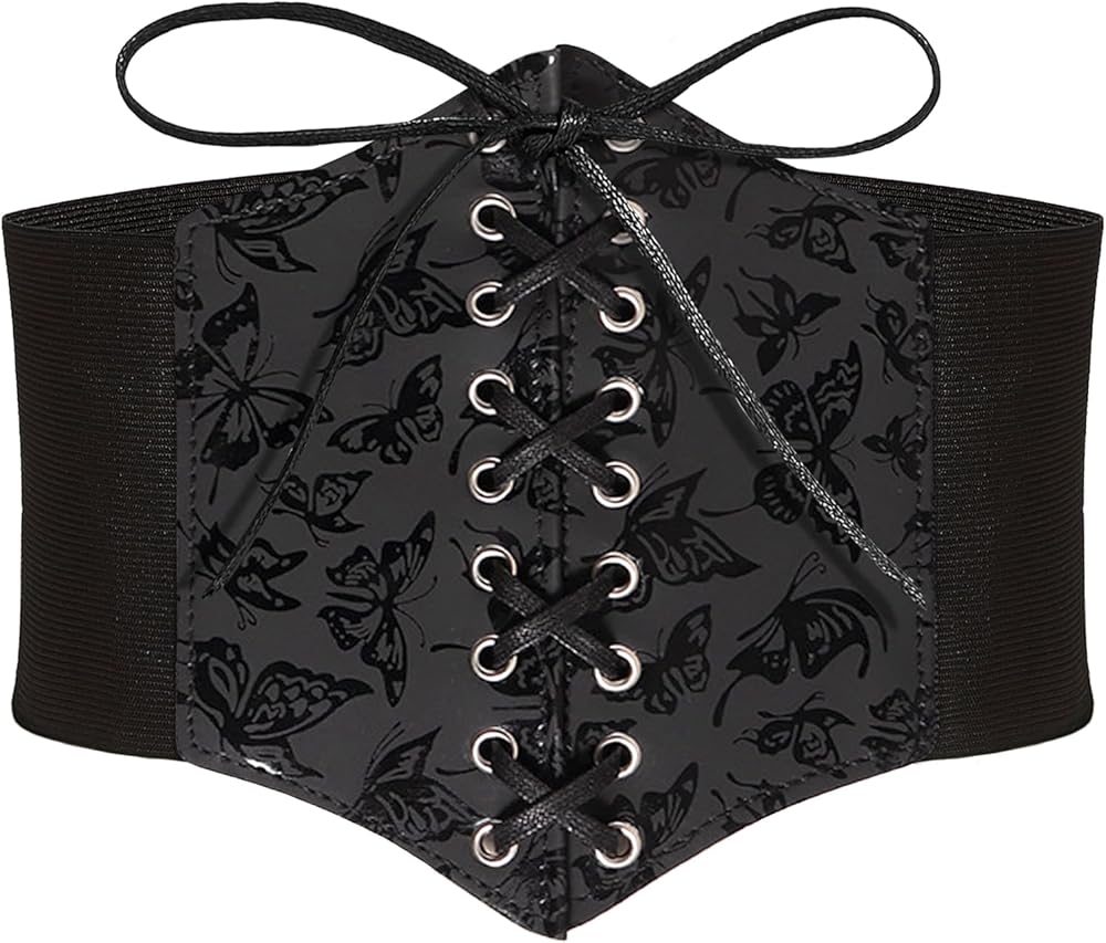 أحزمة خصر مرنة للنساء، مشد قرصان واسع مرن برباط لفستان فراشة داكنة، حزام خصر عصر النهضة للأزياء التنكرية