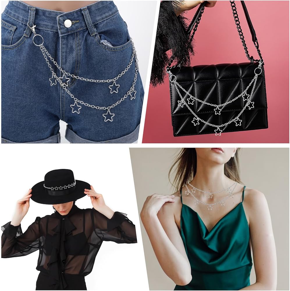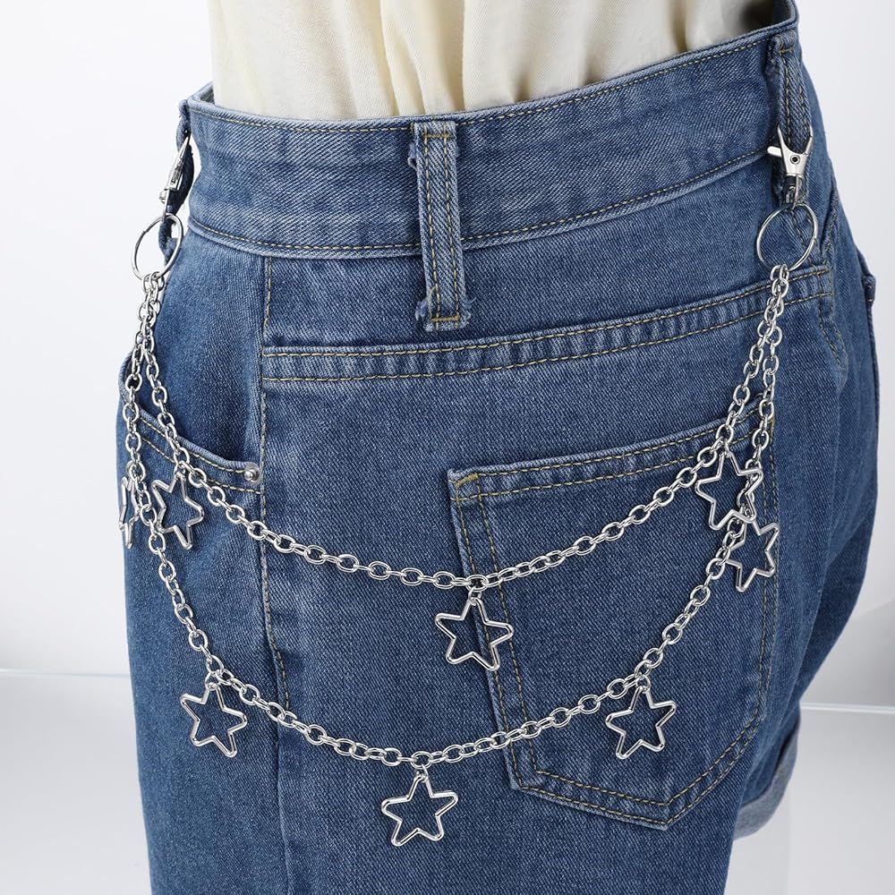 Multi Application: The silver chain stars y2k is widely used in wallet, pants, janes, skirt, belts, necklaces and keychain. They are great accessories for dancer, rock music, punk, hip-hop lover, men and women. The two metal clasps of jeans chain can be attached to a trouser loop or purse.