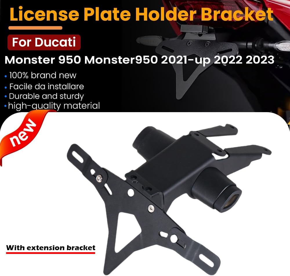حامل لوحة الترخيص حامل مزيل الحاجز يناسب Ducati Monster 950/937 2021 ~ 2025 حامل لوحة ترخيص الدراجة النارية طقم مزيل الحاجز حامل لوحة الترخيص