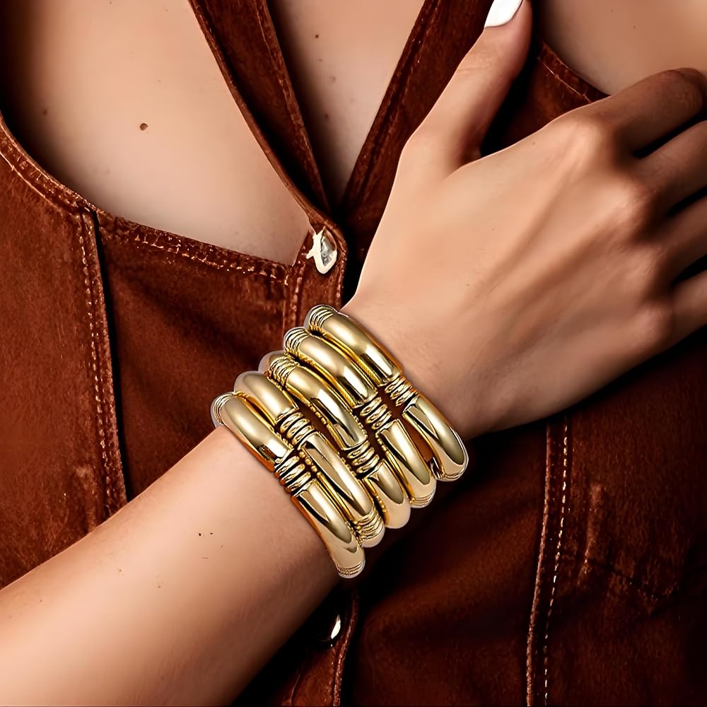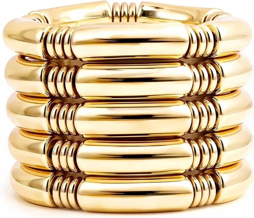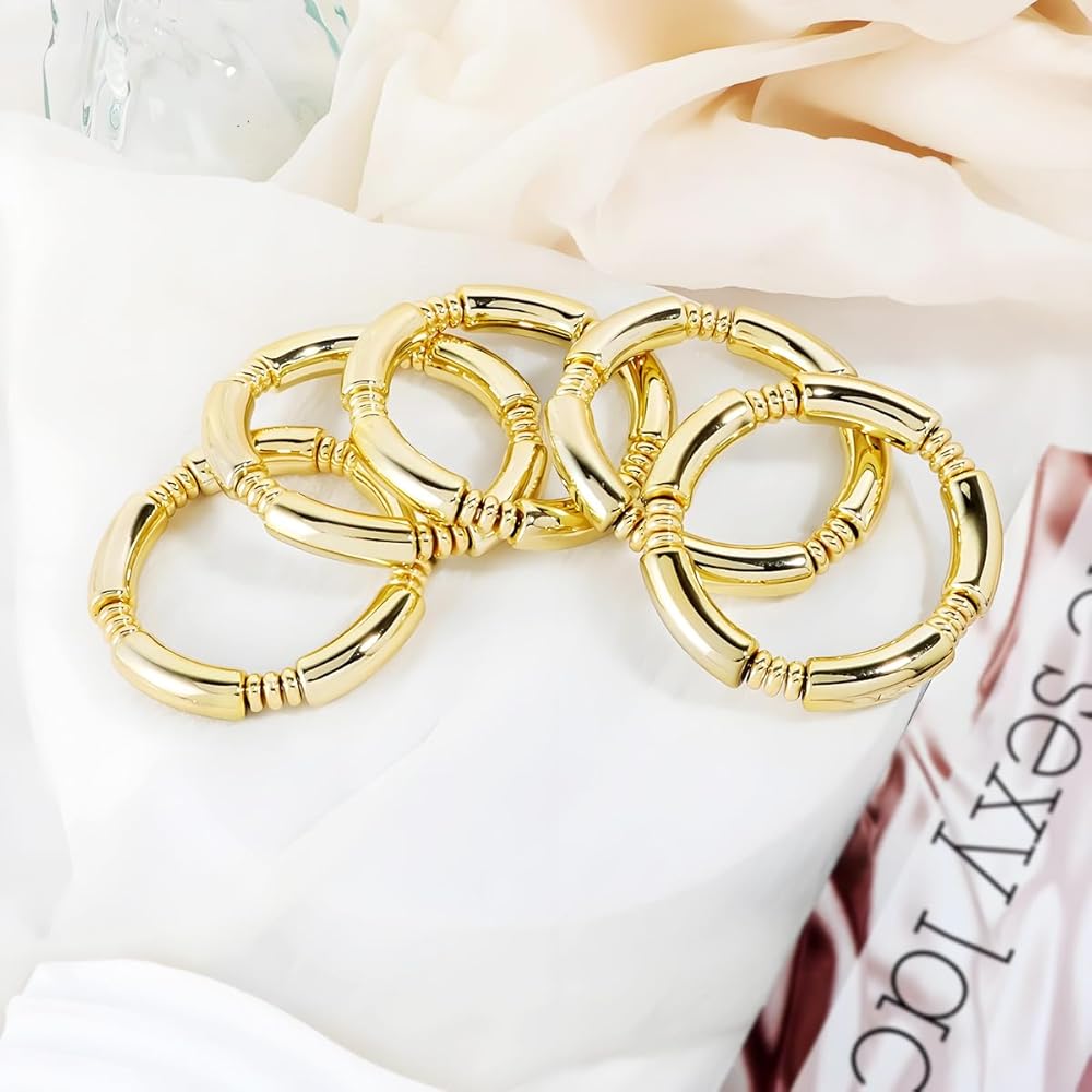 Includ :You will get 5 pieces silver plated bamboo tube stretch bracelets .