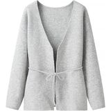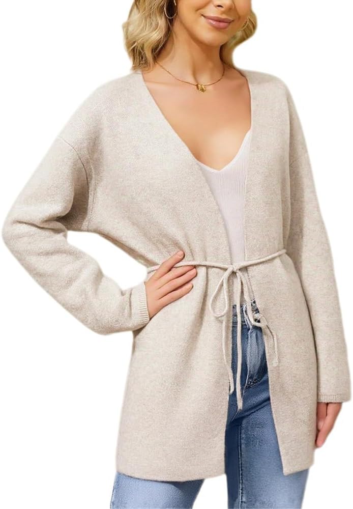 سترات نسائية مفتوحة من الأمام وأكمام طويلة ورقبة على شكل حرف V وسترات محبوكة كاجوال ومعاطف عصرية مكتنزة مع حزام ربط