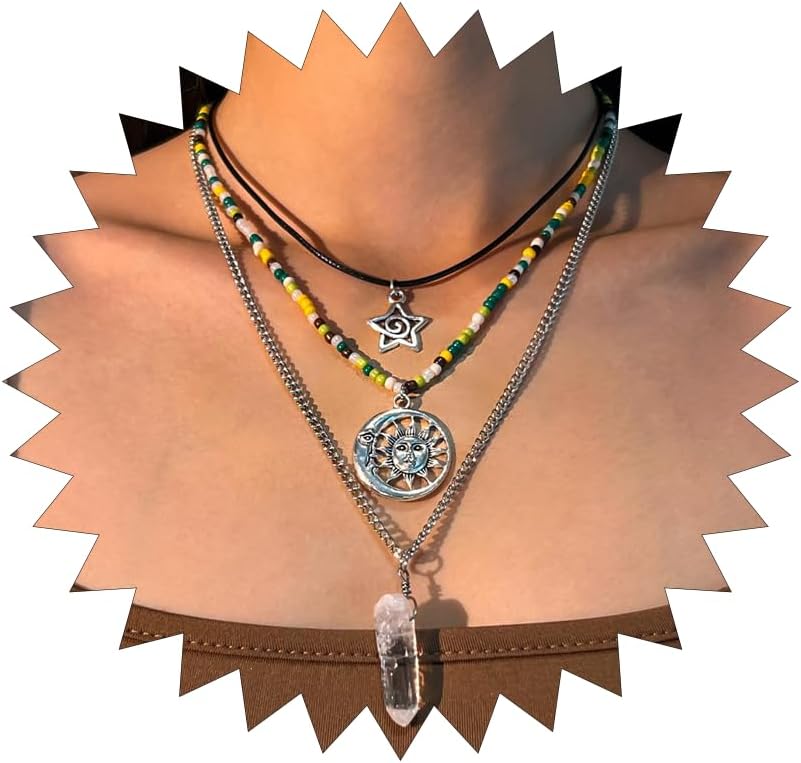 • 5. بيان أزياء متعدد الاستخدامات: ارتدي هذه القلادة المطرزة مع ملابسك المفضلة للحصول على مظهر أنيق. مثالية كقلادة شمسية للنساء أو قلادة قمر للنساء، تتميز هذه القلادة ذات الطبقات البوهيمية بأنها إضافة خالدة إلى صندوق المجوهرات الخاص بك.