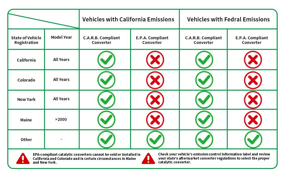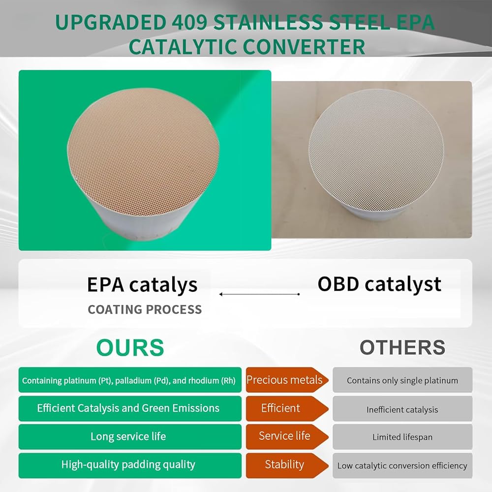 • 【كفاءة متوافقة مع وكالة حماية البيئة (EPA) متوافقة مع وكالة حماية البيئة (EPA) للانبعاثات الفيدرالية (باستثناء CA/NY/CO/ME)، تصميم عالي التدفق يقلل من الضغط الخلفي مع الحفاظ على كفاءة التحويل، وتجنب فحص أضواء المحرك.