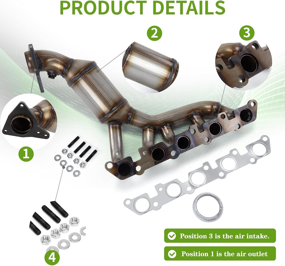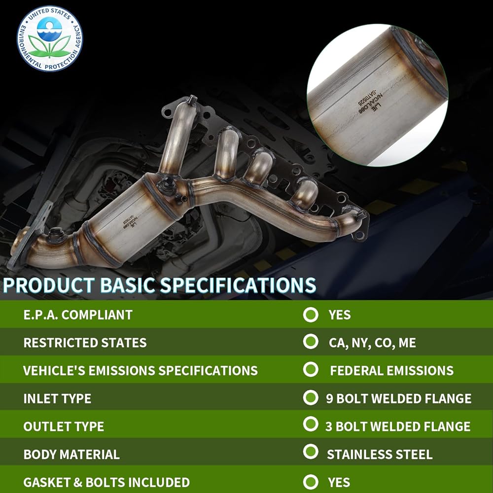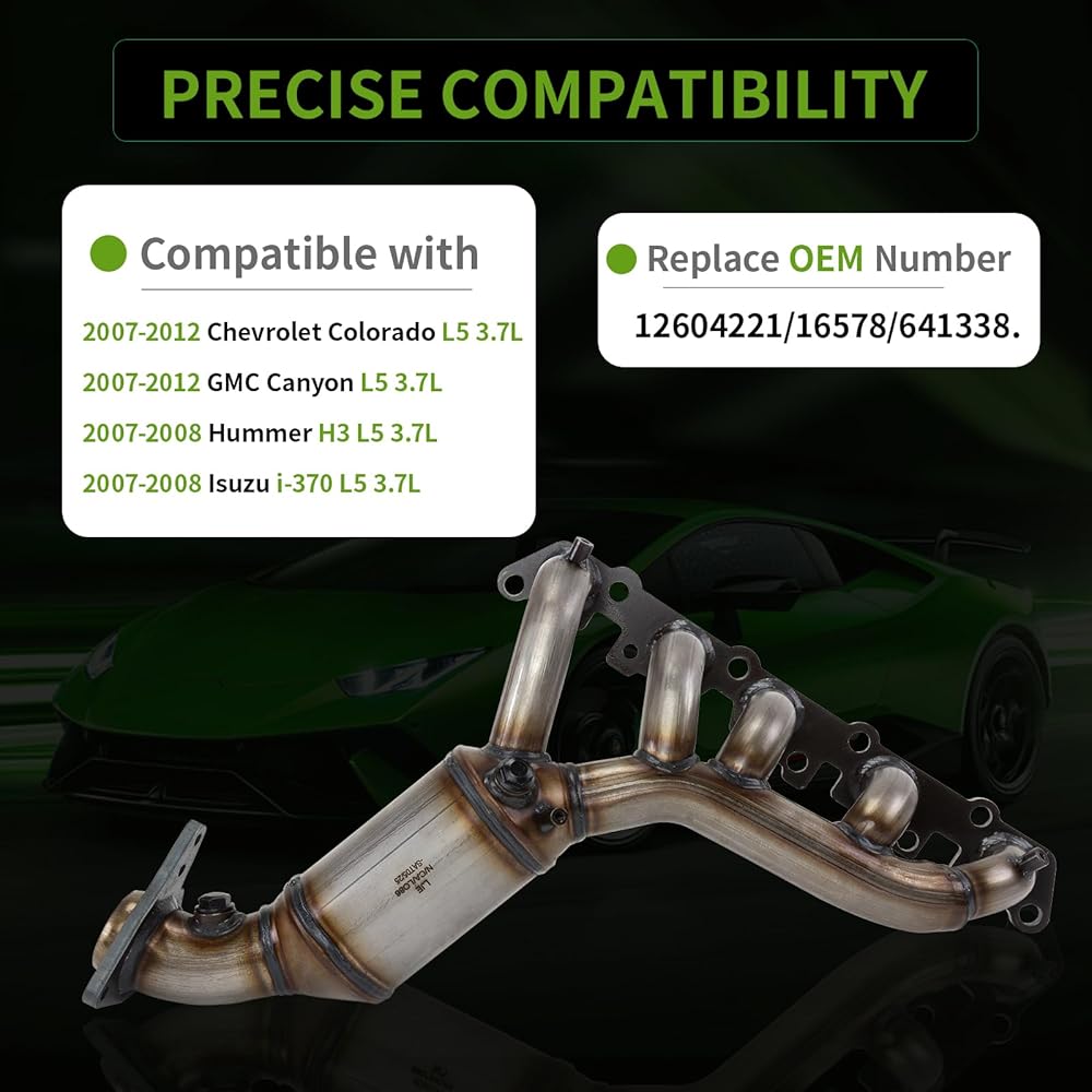 طقم محول حفاز مشعب العادم الأمامي 3.7 لتر متوافق مع 2007-2012 تشيفي كولورادو، 2007-2012 جي إم سي كانيون، 2007-2008 هامر H3، 2007-2008 ايسوزو i-370 متوافق مع وكالة حماية البيئة