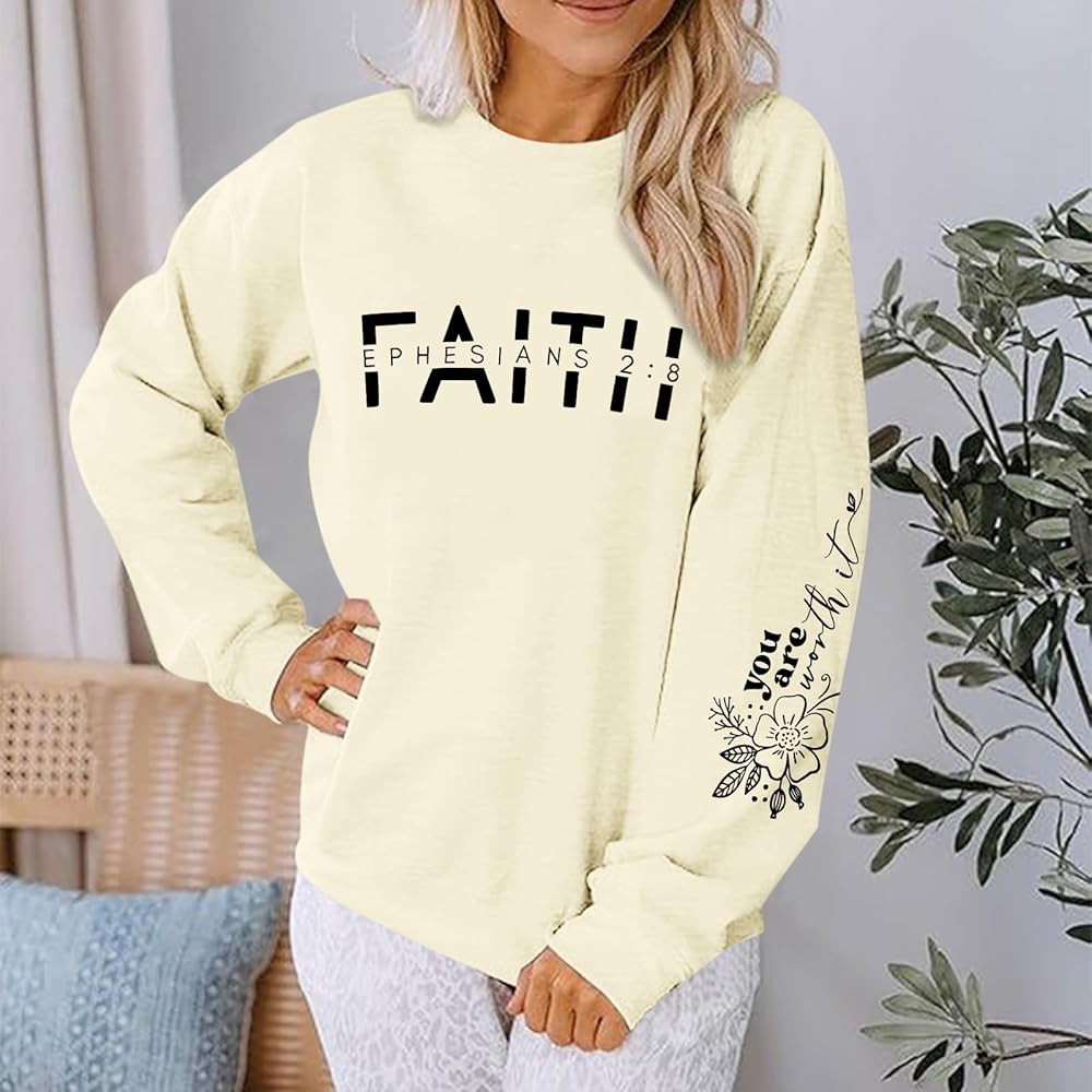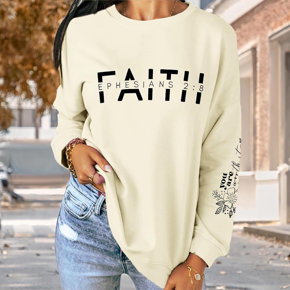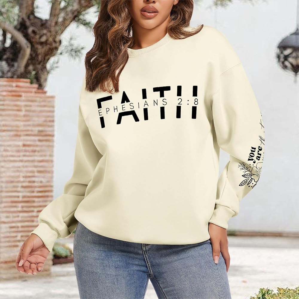مطابقة: سويت شيرت ديني للسيدات، سويت شيرت ملهم يمكن أن يظهر سحرك من خلال مطابقة بسيطة فقط. يمكنك إقران أكمام يسوع الطويلة مع مجموعة متنوعة من المعاطف والجينز والتنانير لتبدو بمظهر رائع