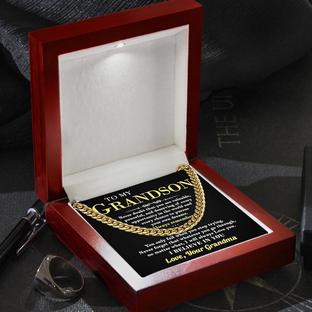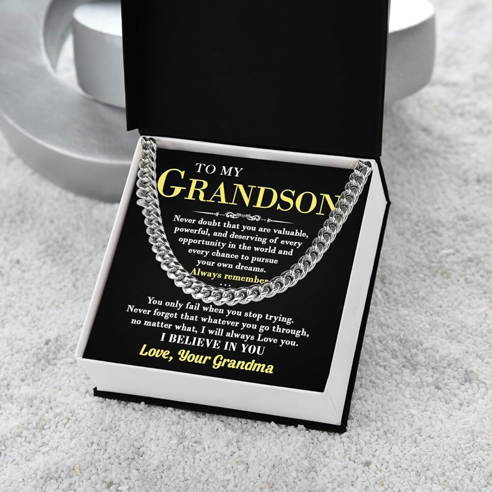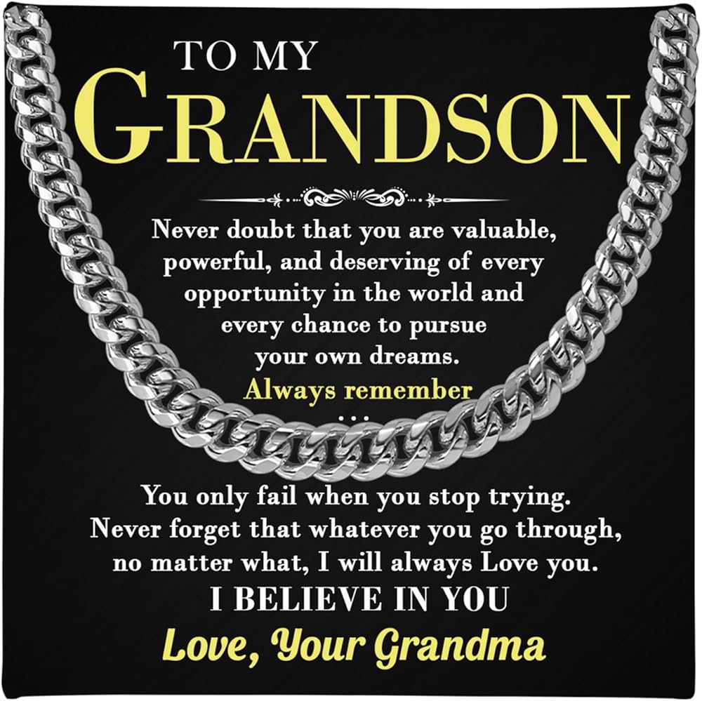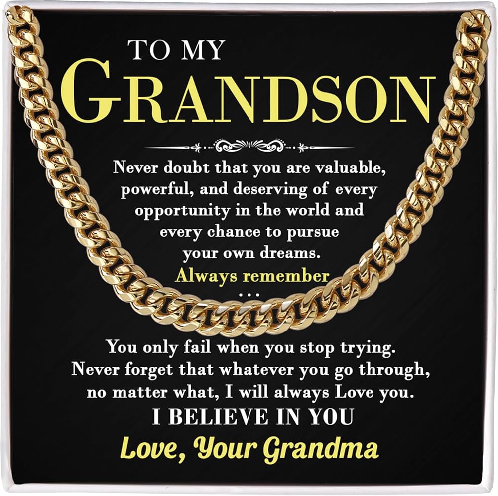 A GREAT GIFT FOR YOUR GRANDSON: If you are worried about what to give your nephew on Father's Day, Christmas, Birthday and other special occasions, I believe our necklace will be a great choice for you. مزودة ببطاقة خاصة وتغليف رائع للتعبير عن المشاعر بينك وبين حفيدك.