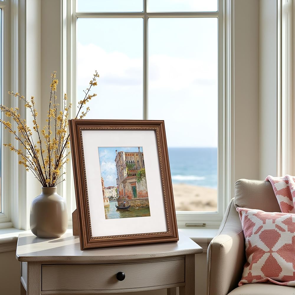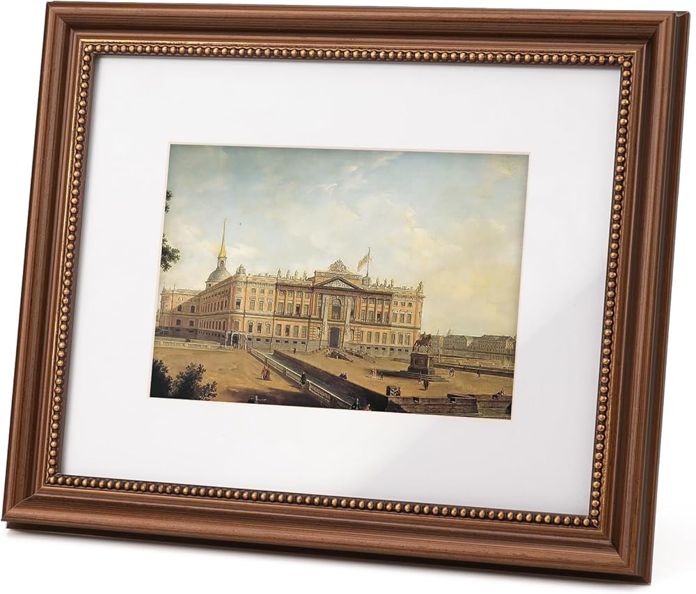 【تصميم عتيق وكلاسيكي】- يتميز إطار الصورة Eitida مقاس 11 × 14 بوصة بإطار خشبي محايد عتيق عالي الجودة يناسب جميع المناسبات والمساحات. الإطار مصنوع من إطار خشبي مطبوع يدويًا من النحاس المصقول مع حافة داخلية مطرزة، مما يضيف لمسة من الفخامة والاحترافية إلى مساحتك. يشتمل الإطار أيضًا على حصيرة أرشيفية كريمية واحدة لصور مقاس 8 × 10.