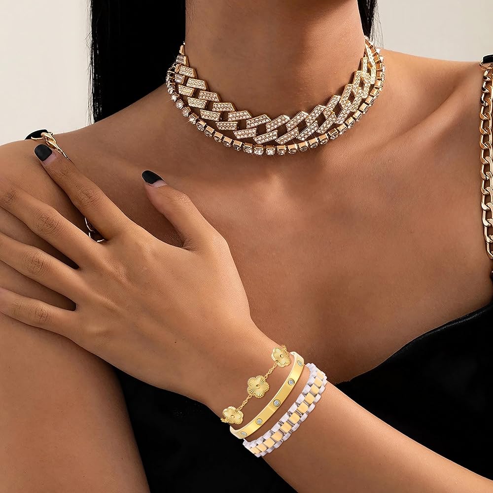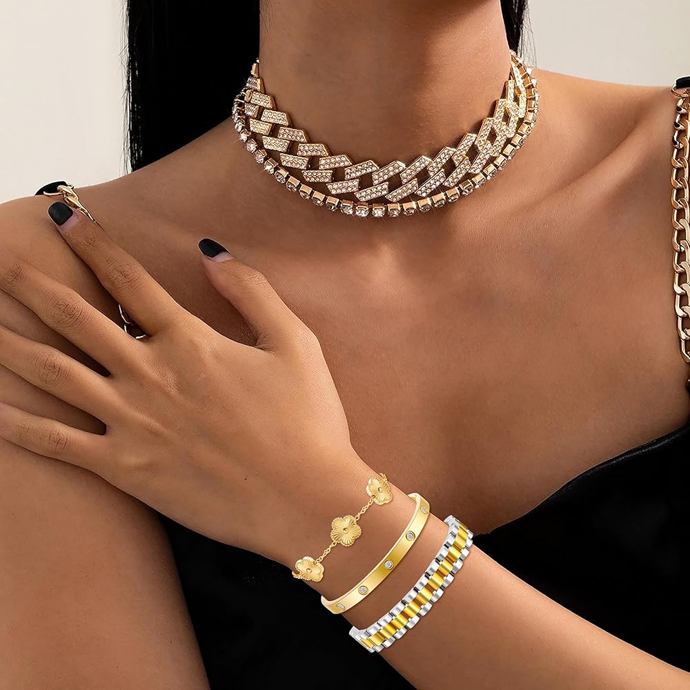 🍀مجموعة أساور ذهبية مكتنزة: هذا السوار الذهبي غير القابل للتشوه مصنوع من الفولاذ المقاوم للصدأ الفاخر، مما يضمن الحفاظ على لمعانه وحالته الجيدة في الاستخدام اليومي. خصائصه المضادة للحساسية تجعله آمنًا للبشرة الحساسة، ويضيف تصميم سوار المعصم المكتنز لمسة أنيقة، بينما تمنع مادة المجوهرات المتينة المقاومة للماء البهتان أو التشوه أو تغير اللون بمرور الوقت. بالإضافة إلى ذلك، تم تصميم السوار بتقنية مضادة للأكسدة، مما يوفر لمعانًا يدوم طويلاً. ضمان الراحة وسهولة الارتداء دون تهيج - مثالي لأولئك الذين يبحثون عن الأناقة التي تدوم طويلاً.