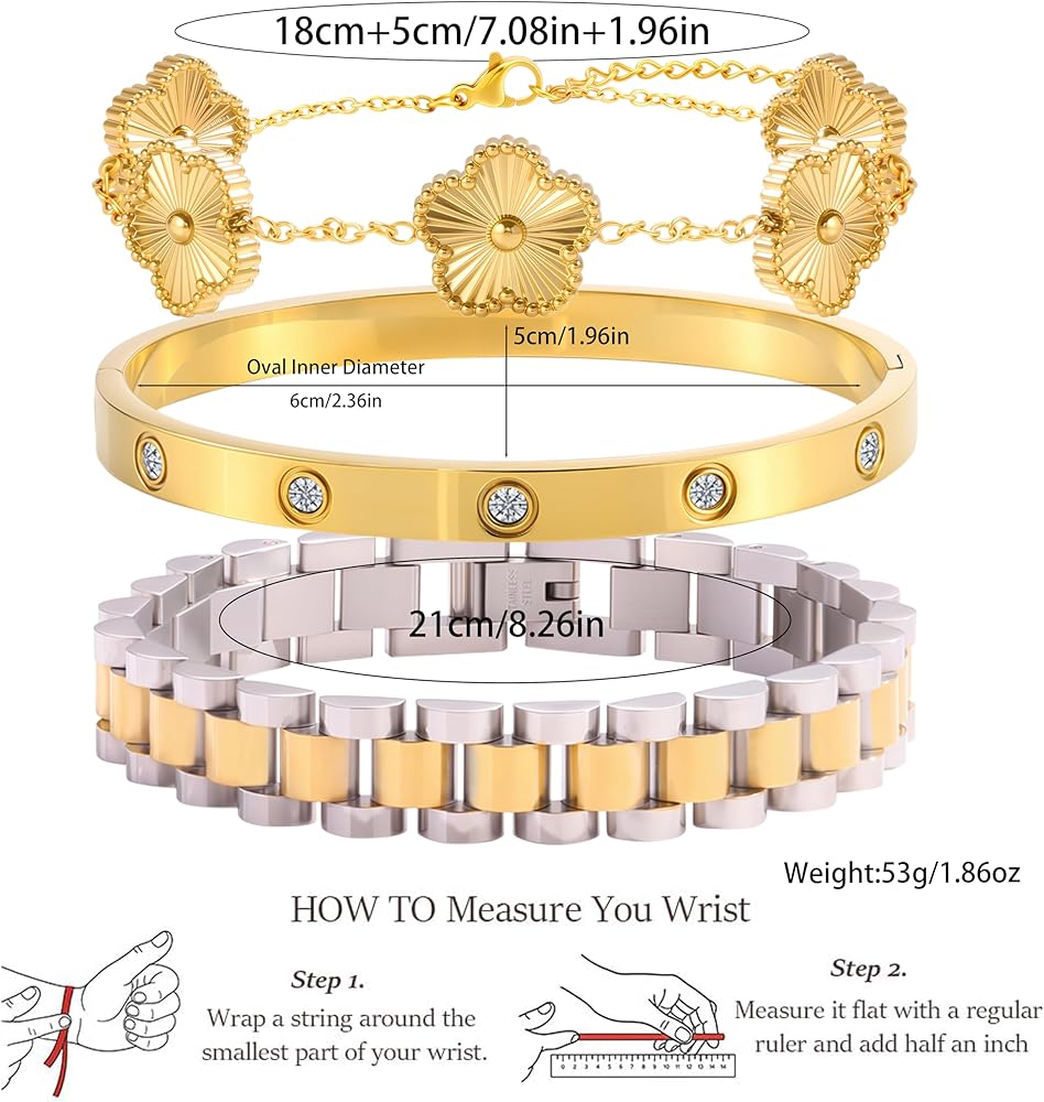 🍀 خدمة ما بعد البيع: إذا كانت لديك أي أسئلة حول مجموعة أساور سلسلة الوصل هذه ومجموعة أساور البرسيم الذهبية الزهرية، فيرجى الاتصال بنا، وسوف نقوم بالرد في غضون 24 ساعة. نضمن رضاك بنسبة 100%.