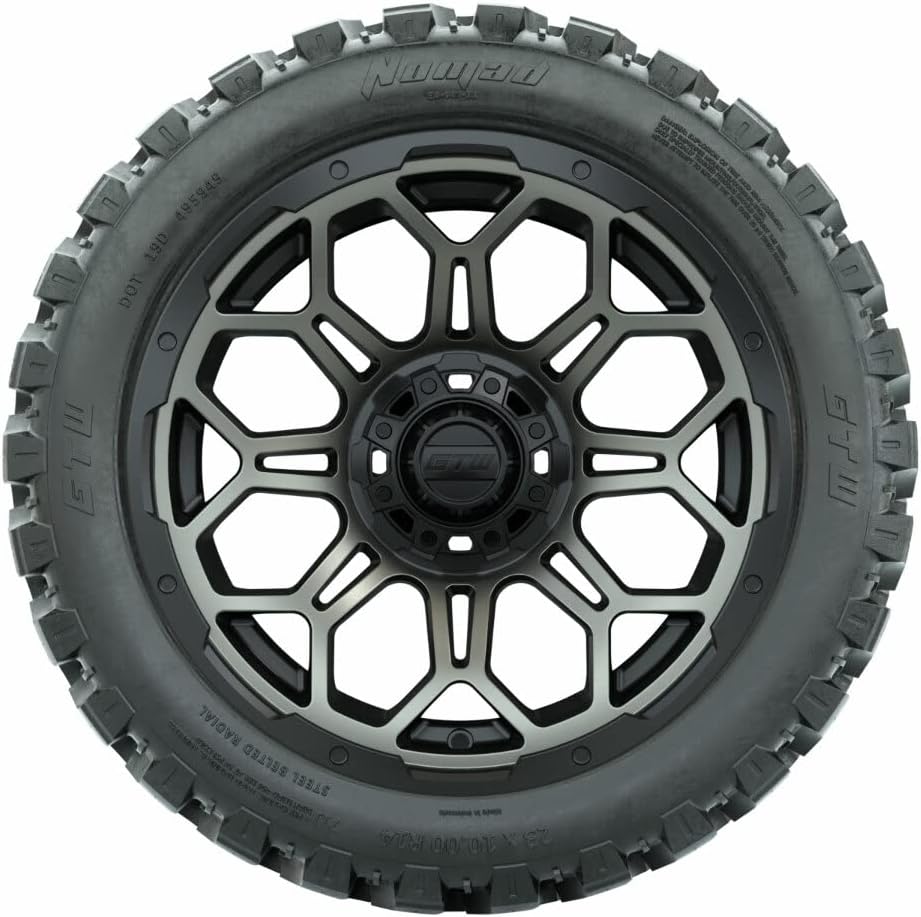 الإطارات: تتضمن (4) إطارات شعاعية GTW Nomad بحزام فولاذي لجميع التضاريس مقاس 23x10-R14 (طول 23 بوصة) - توفر قوة جر موثوقة في الظروف القاسية