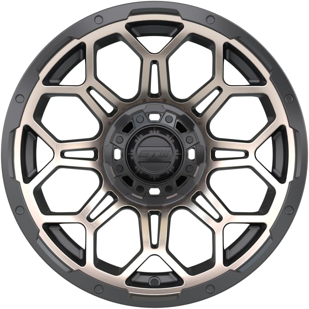 العجلات: تتضمن (4) عجلات 14x7 GTW Bravo من الألومنيوم البرونزي غير اللامع للطرق الوعرة مع إزاحة 3:4؛ قبعات مركزية متطابقة متضمنة