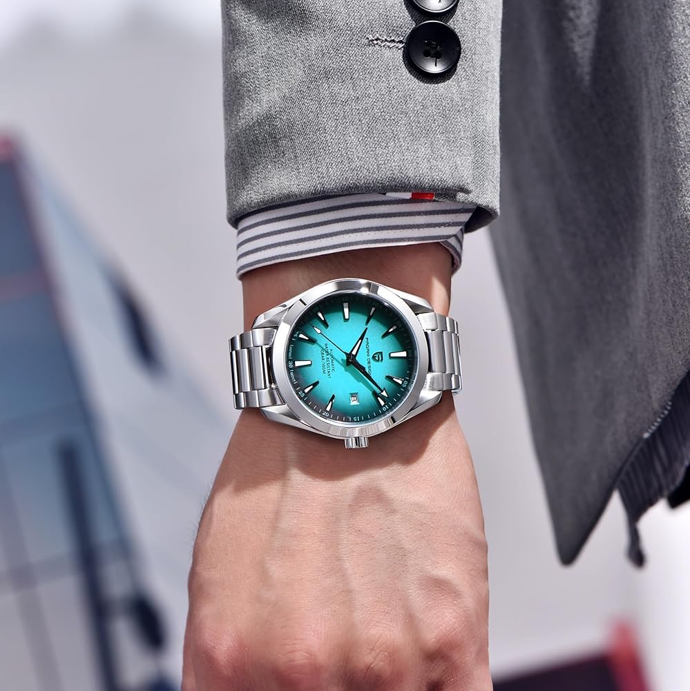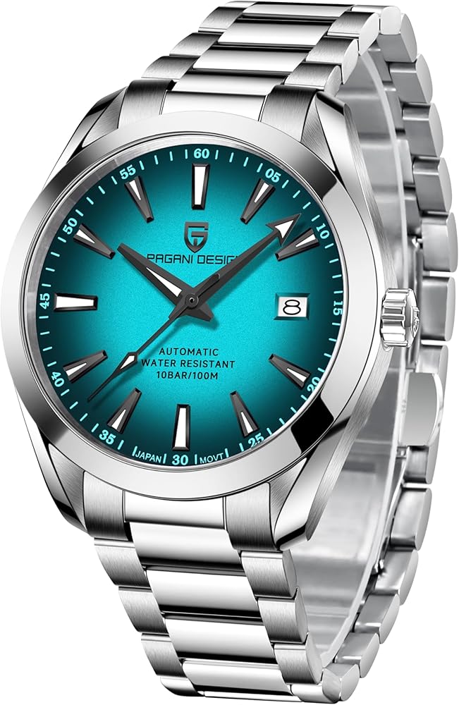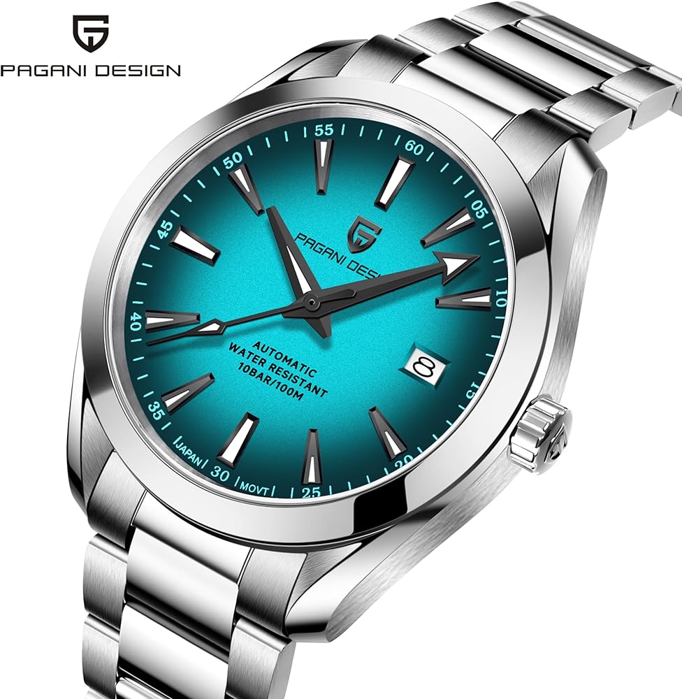Men's Automatic Watch: A Blend of Style and Durability Unique Design: The Pagani Design men's automatic watch features a distinct 40mm case with a domed bezel. The case sides and lugs showcase an elegant shine, enhancing its overall allure and making it a truly eye-catching timepiece. Over the years, the Datejust-inspired models have maintained their original aesthetic elements, ensuring a classic and timeless look that stands out in any setting Comfortable and Long-Lasting: Crafted with a stainless - steel automatic movement, this watch offers a comfortable fit on your wrist. It's not only a pleasure to wear but also effortlessly matches various outfits, making it suitable for both the adventurous souls and those who value a stylish appearance. Whether you're dressing up for a formal event or going for a casual outing, this watch complements your style with ease Exceptional Material and Performance: The high - wear - resistant stainless - steel case, combined with a 316L stainless - steel wire - drawing process band, guarantees long - lasting durability. The sapphire crystal provides excellent scratch resistance, protecting the watch face. With luminous functions, you can easily read the time in low - light conditions. The watch is designed with a 10 - bar waterproof feature, suitable for daily activities such as withstanding water splashes, rain, and even swimming or diving. However, it's important to note that it's not suitable for exposure to steam or hot water