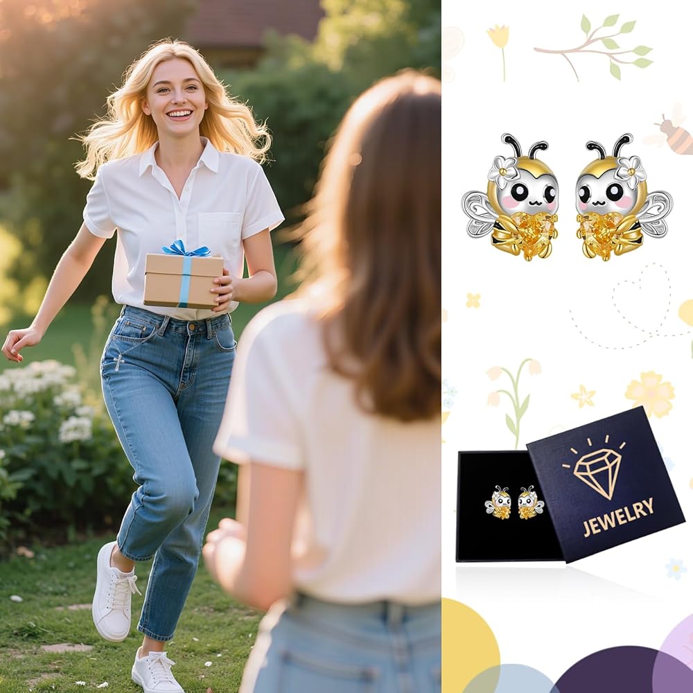 **Charming Design**: Our bee earrings for women feature an adorable bee stud design, perfect for adding a touch of whimsy to any outfit and showcasing your love for nature.