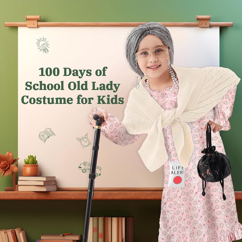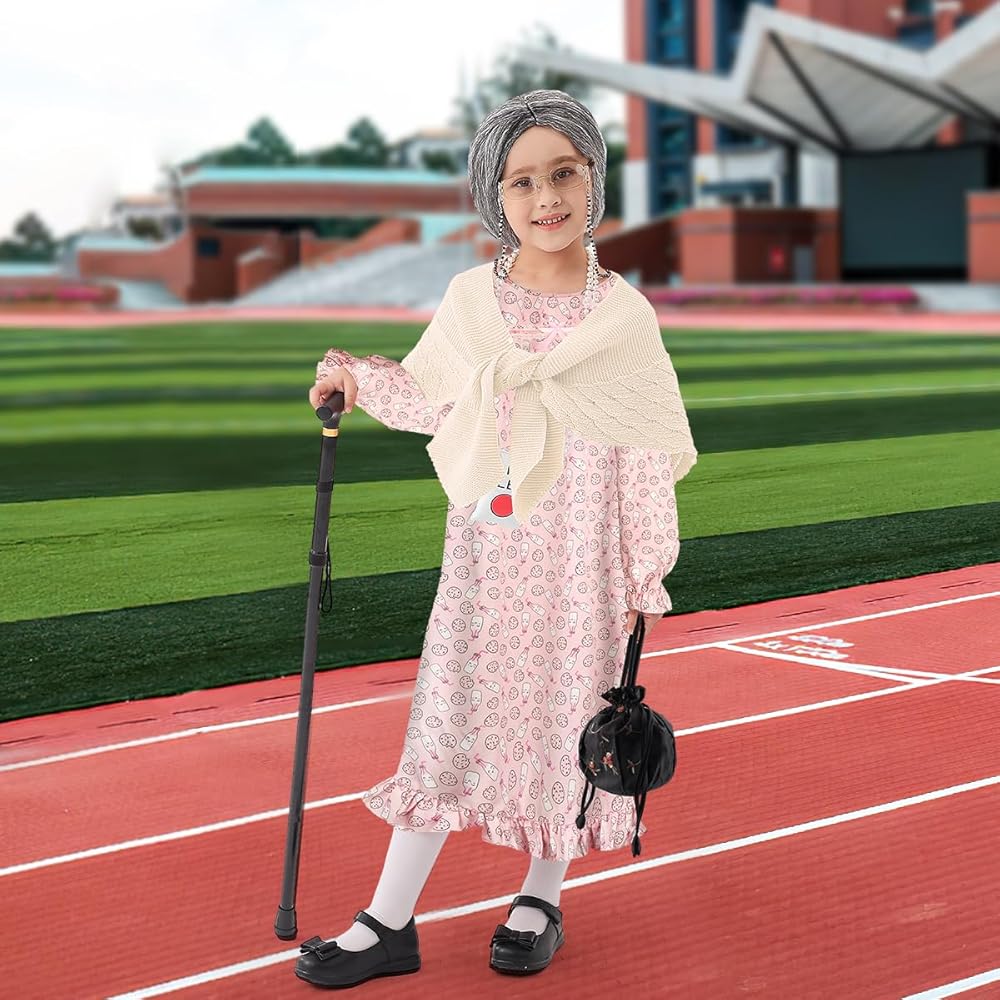 Applicable Occasions: This Old Lady Costume is perfect for Old Grandma-themed events, Halloween fun, trick-or-treating, dress-up parties, themed birthday parties, the 100 Days of School costume in kindergarten, 100th Day celebrations, granny costumes, and kids' grandma costumes.