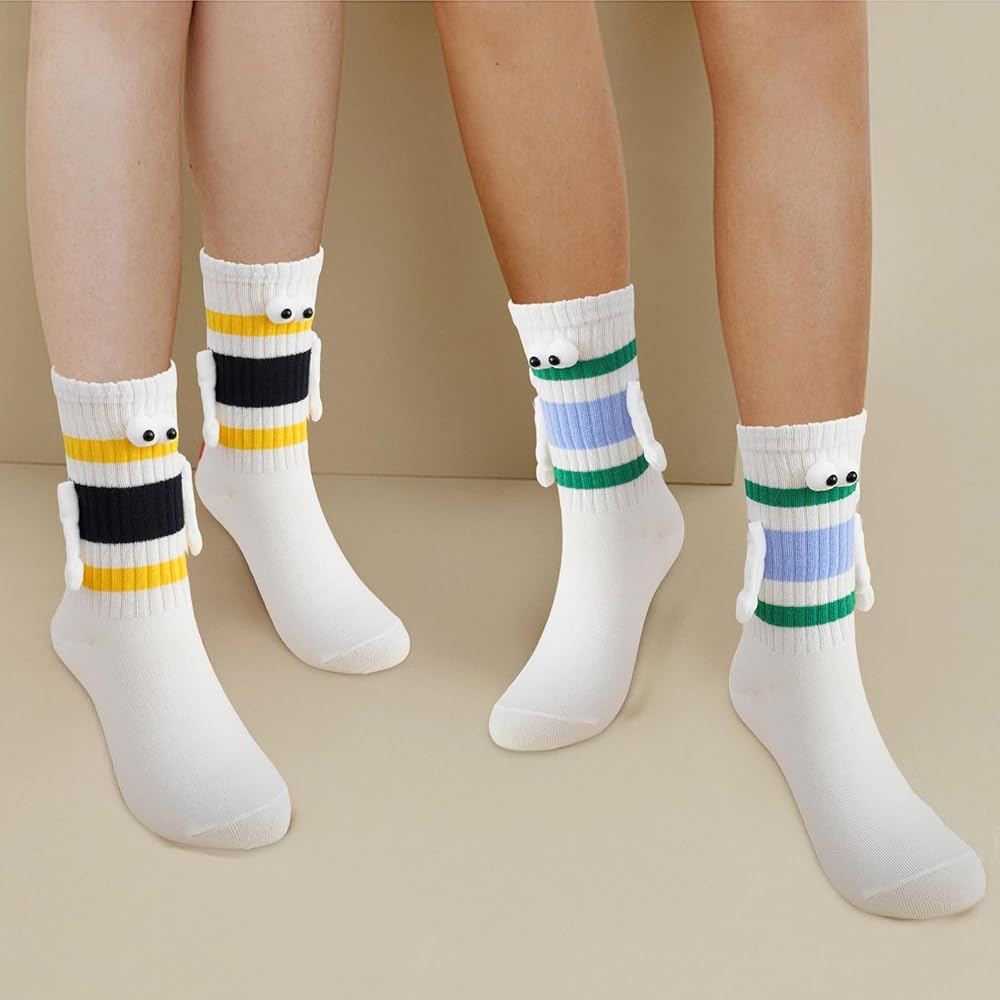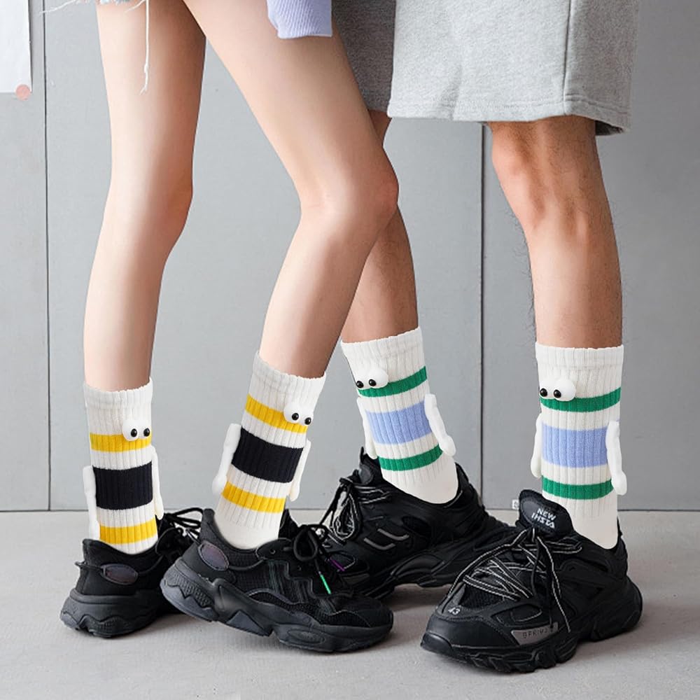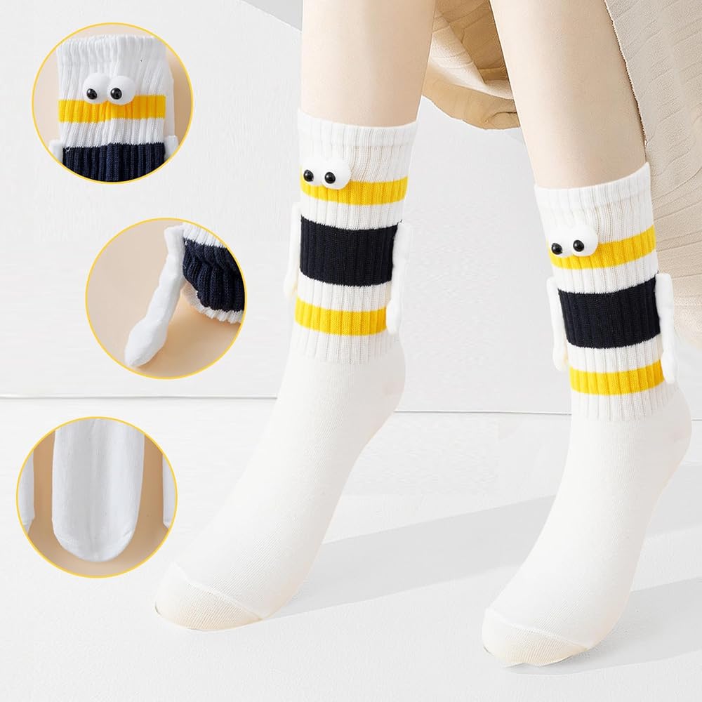 【تصميم مغناطيسي ممتع وفريد من نوعه】: تتميز هذه الجوارب الرائعة بعيون ثلاثية الأبعاد مرحة وأيدي مغناطيسية "تمسك اليدين" عند إقرانها، مما يضيف لمسة جميلة للأزواج. مثالية للتعبير عن الحب بطريقة إبداعية!