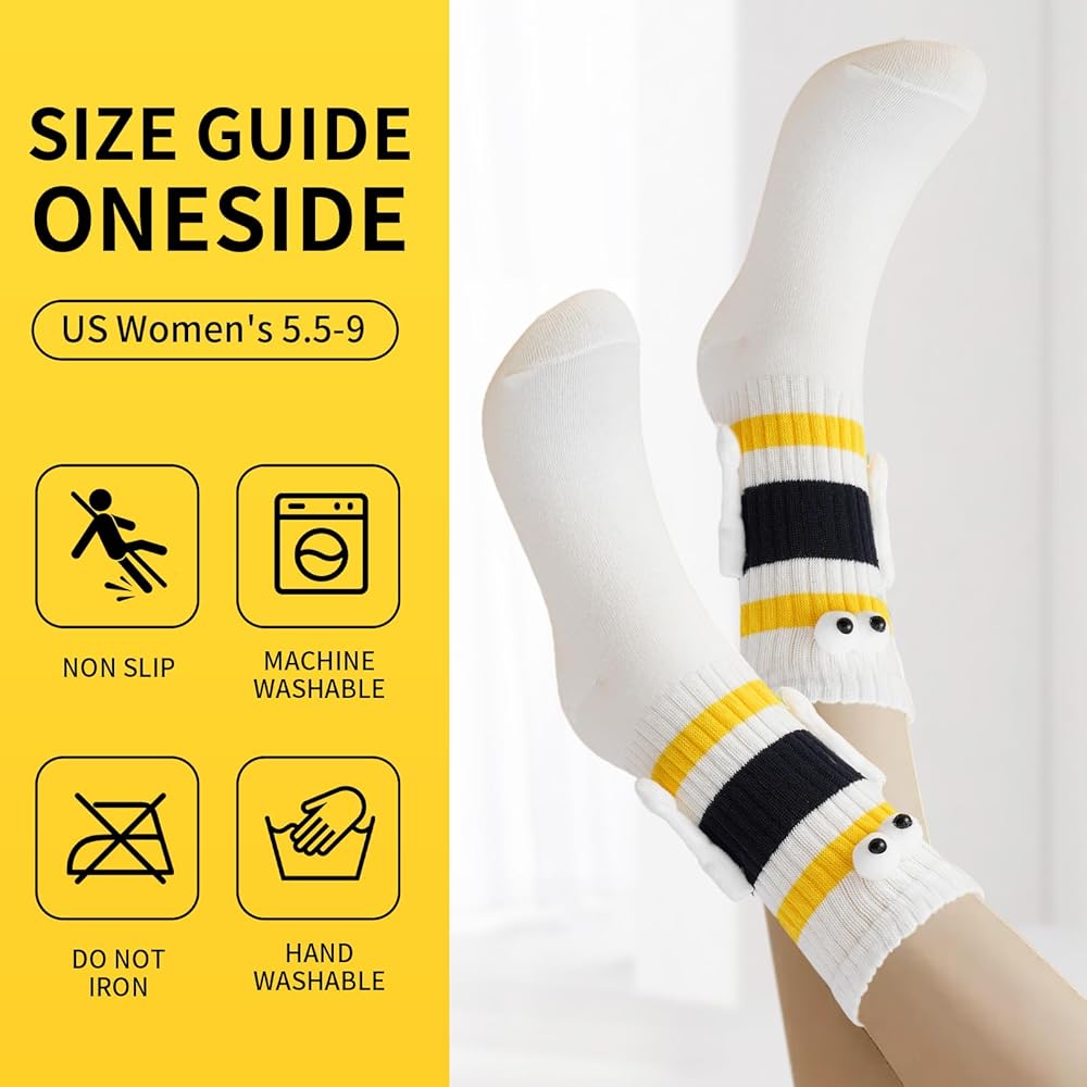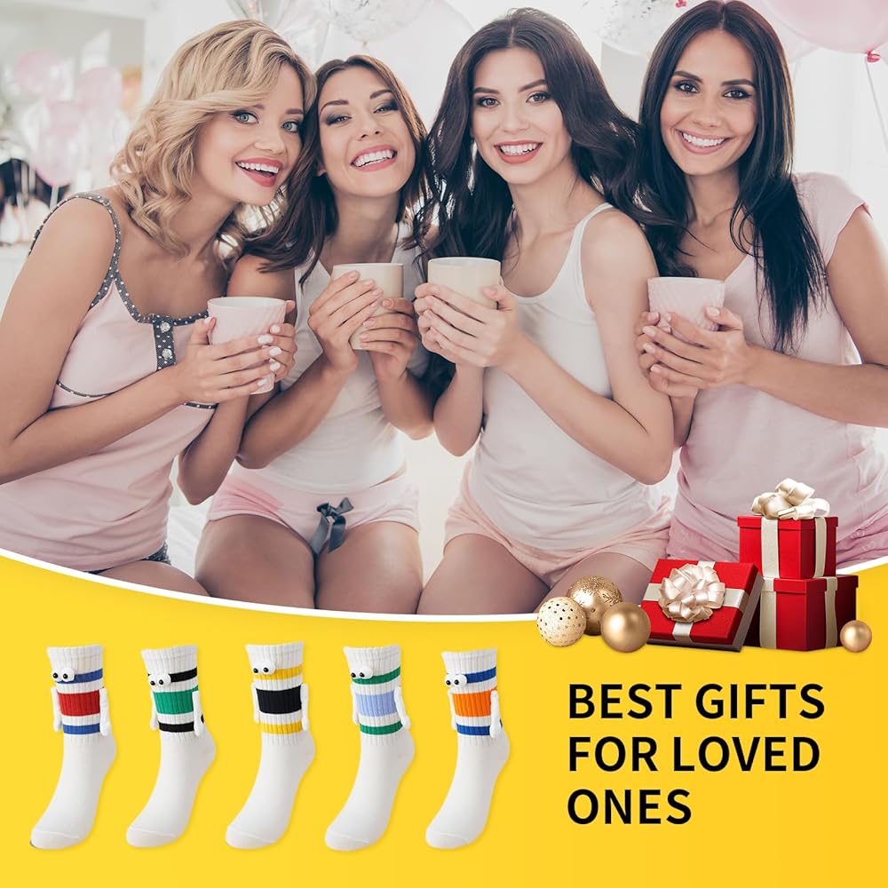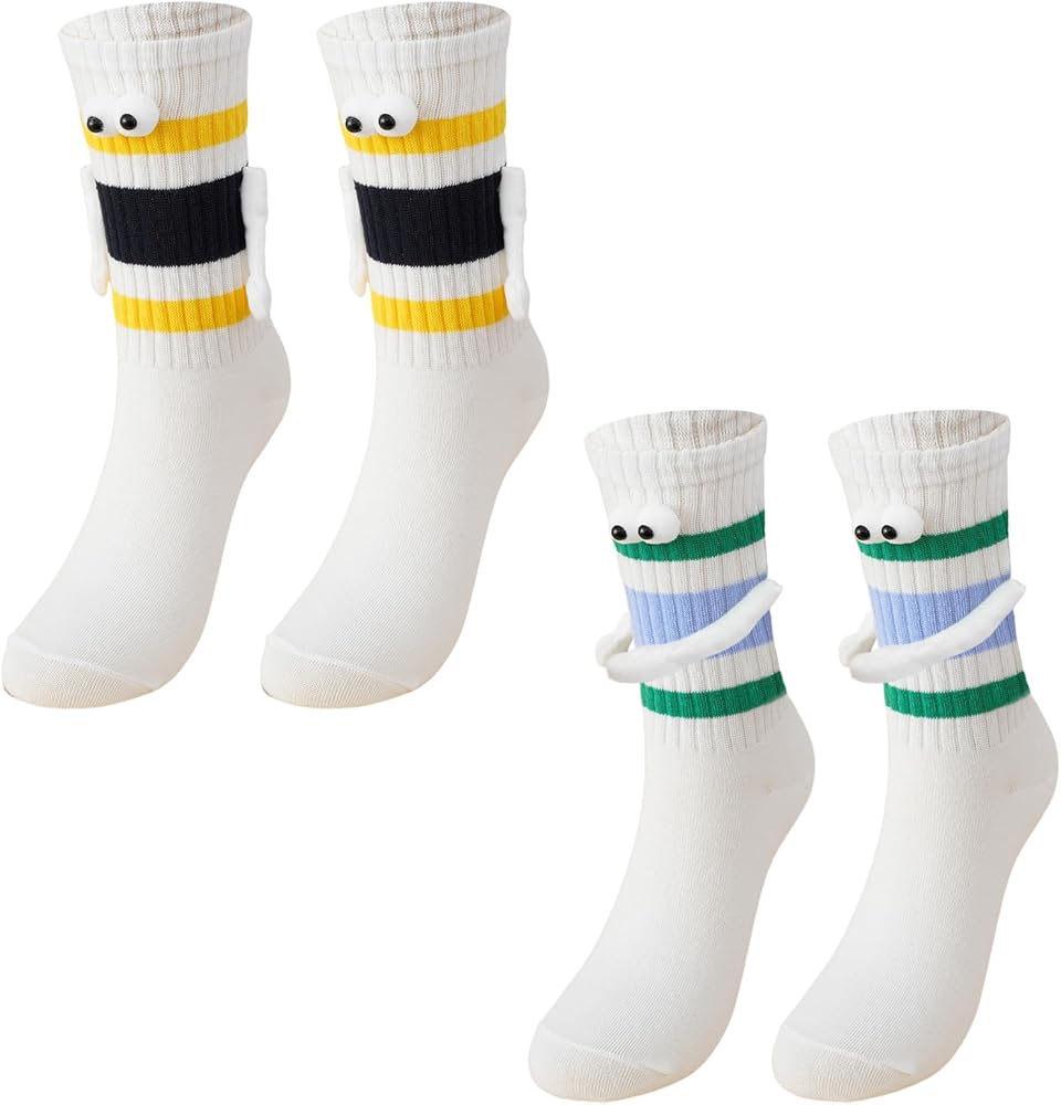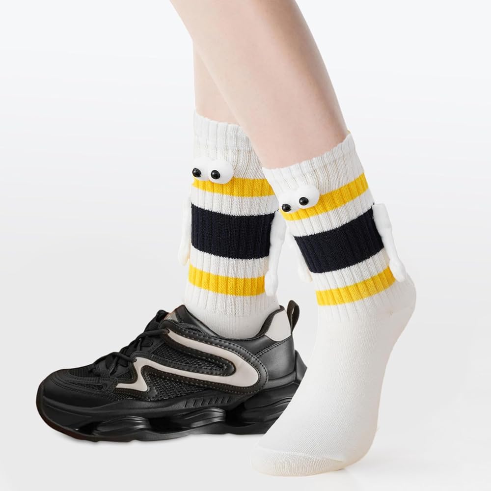 【تصميم مغناطيسي ممتع وفريد من نوعه】: تتميز هذه الجوارب الرائعة بعيون ثلاثية الأبعاد مرحة وأيدي مغناطيسية "تمسك اليدين" عند إقرانها، مما يضيف لمسة جميلة للأزواج. مثالية للتعبير عن الحب بطريقة إبداعية!