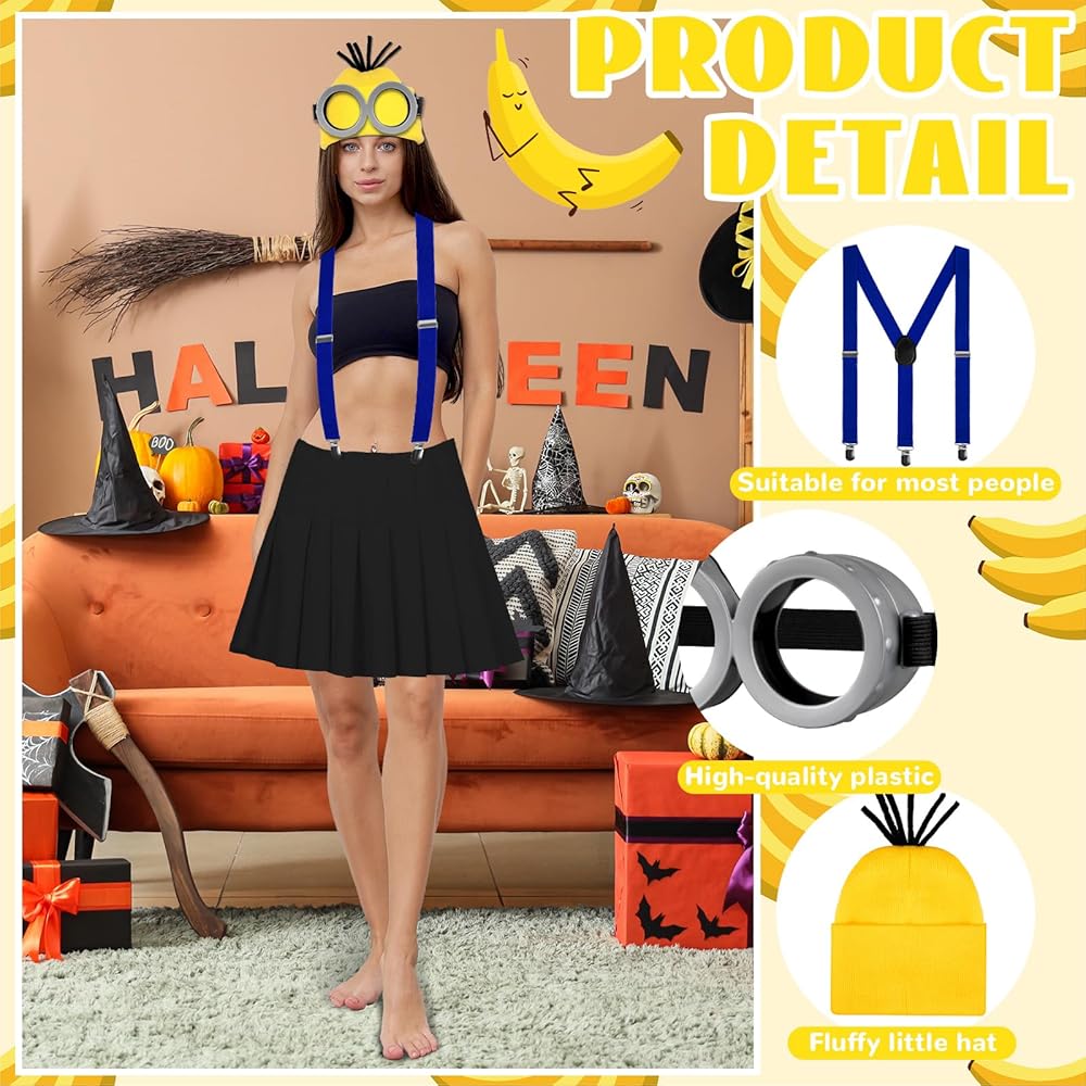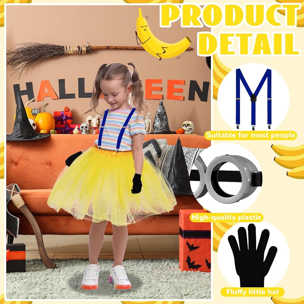 يتضمن المنتج: سوف تحصل على مجموعة من أزياء الهالوين التنكرية ذات الطابع الأصفر، بما في ذلك قبعة صوفية صفراء وقفازين أسودين وحمالة وتنورة توتو زرقاء وزوج من النظارات الرمادية. مجموعة الملابس الجميلة يمكن أن تساعدك على خلق عيد الهالوين اللطيف جدًا، وهو مناسب جدًا لأجواء الهالوين.