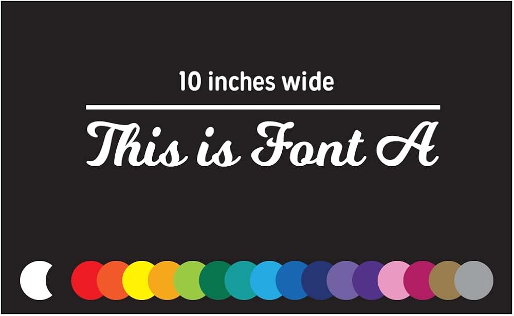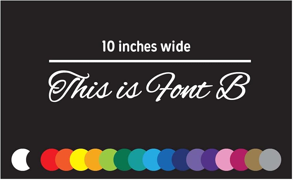 Please customize with the wording you'd like for your sticker. There is a limit of 16 characters for each decal. The letters will be constrained by either a length of 10 inches or a height of 4 inches. So, two letters will be 4 inches tall and the length of the characters. A word or words that have 16 characters will be 10 inches long and approximately 1.5 inches tall depending on the font chosen. There are several fonts and colors to choose from. Please be aware that some hard plastics will resist adhesive vinyl, so this material is best for glass and glossy painted surfaces.