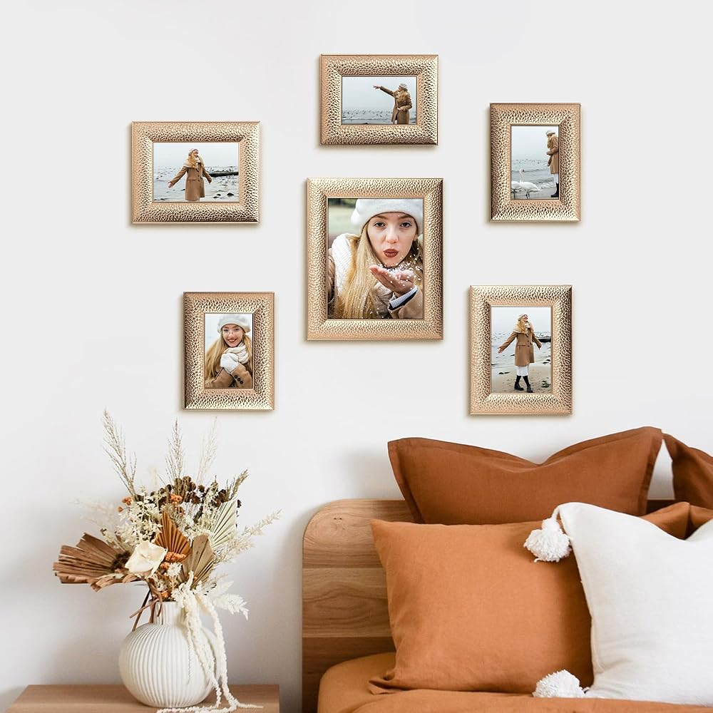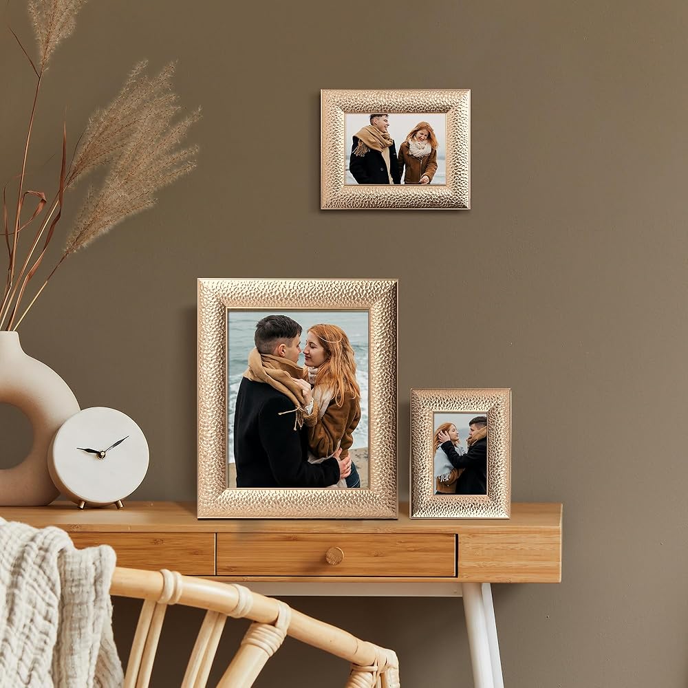 إطارات ذهبية عصرية أنيقة: إطارات ذهبية فاخرة مع لمسة نهائية ذهبية لامعة ترفع من مستوى أي نمط داخلي. اعرض صور الزفاف أو الذكريات العائلية أو صور التخرج بشكل مثالي مع الأناقة الخالدة
